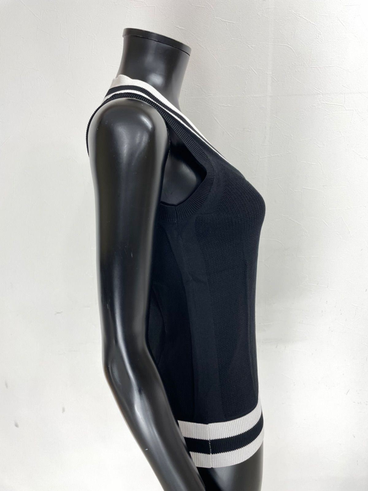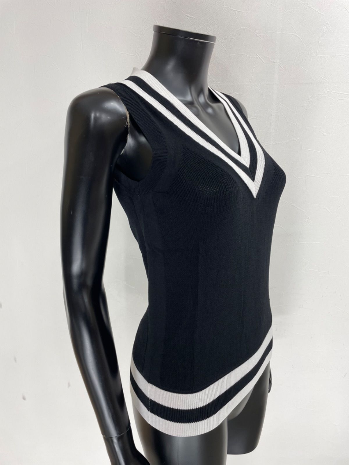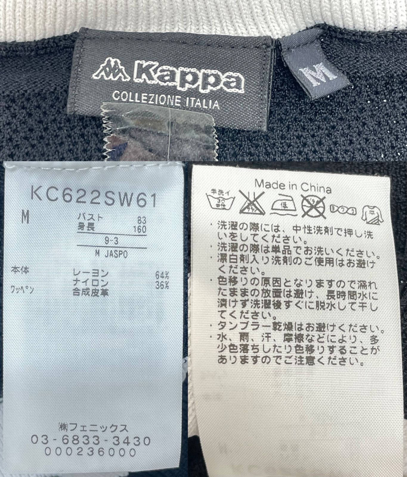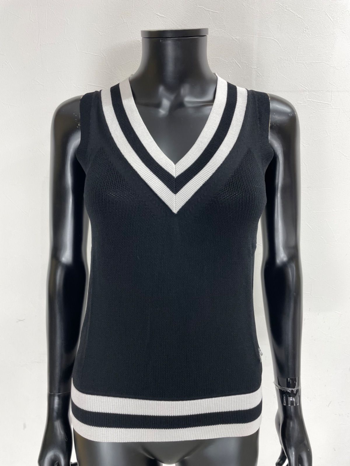 【USED】Kappa カッパ レーヨン Vネック ニット ベスト ワッペン ブラック 黒 レディース M ゴルフウェア