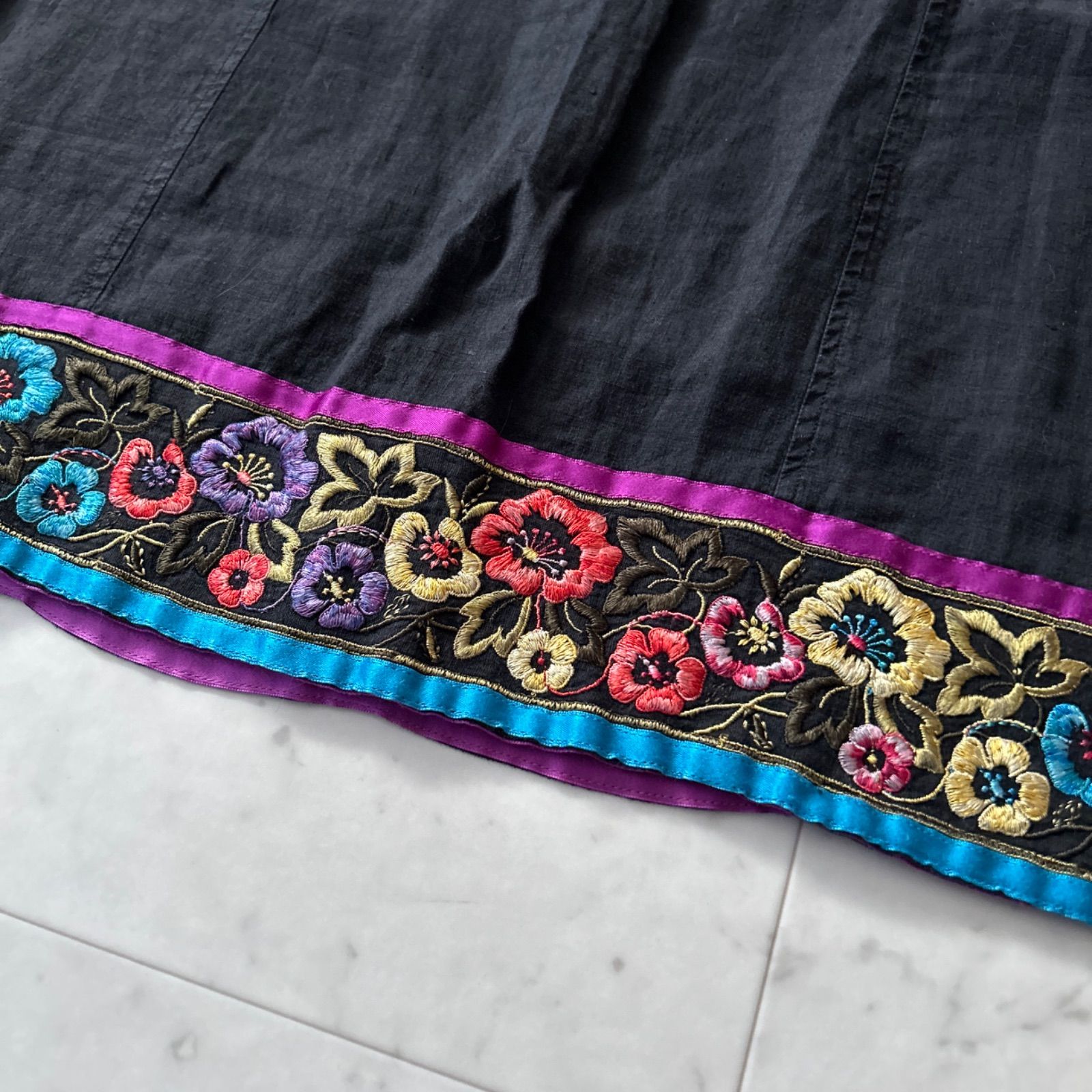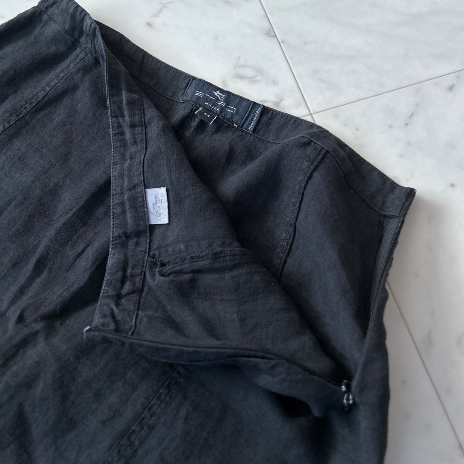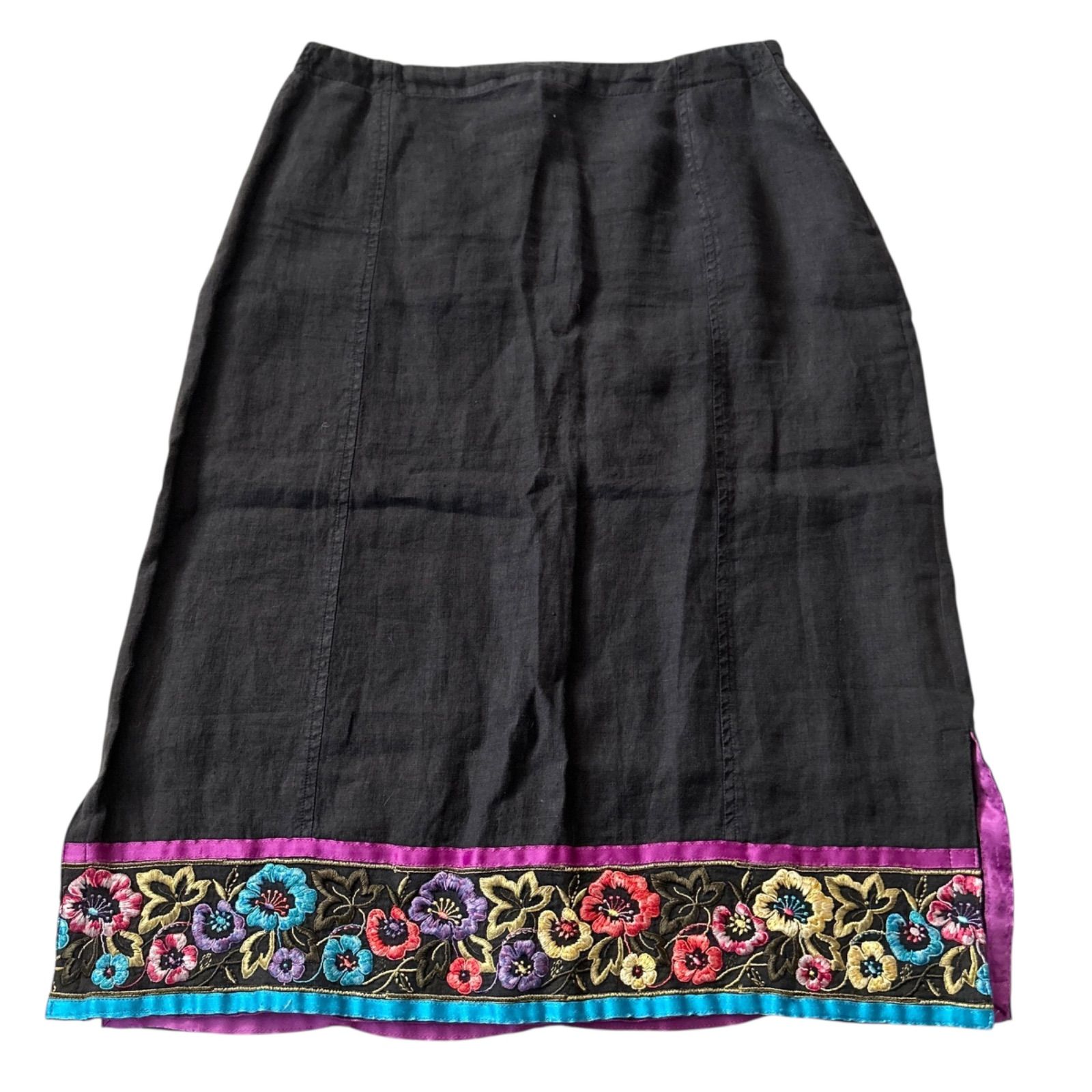 ETRO エトロ 大きいサイズ44 ブラック リネンスカート 刺繍 花柄 エンブロイダリー Lサイズ