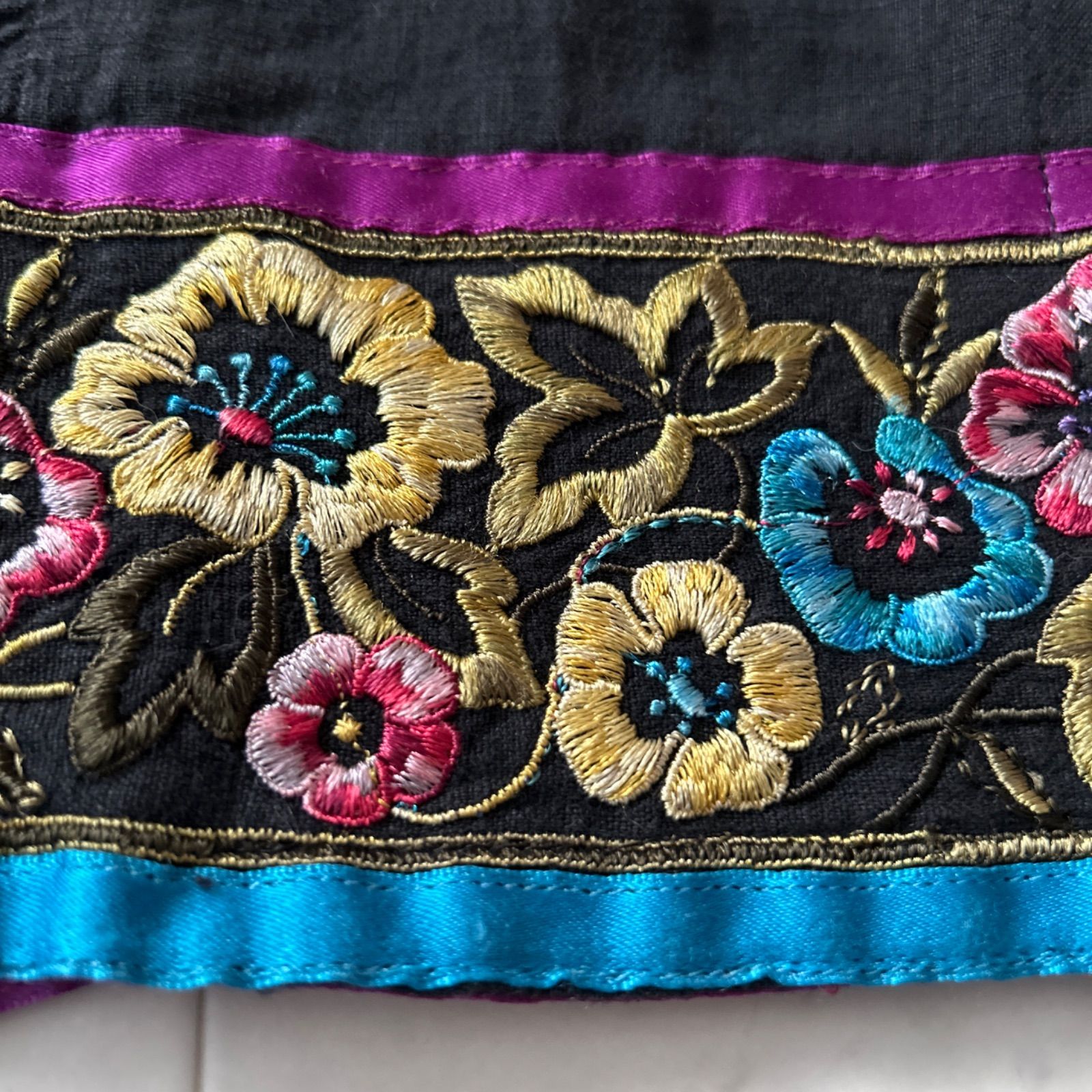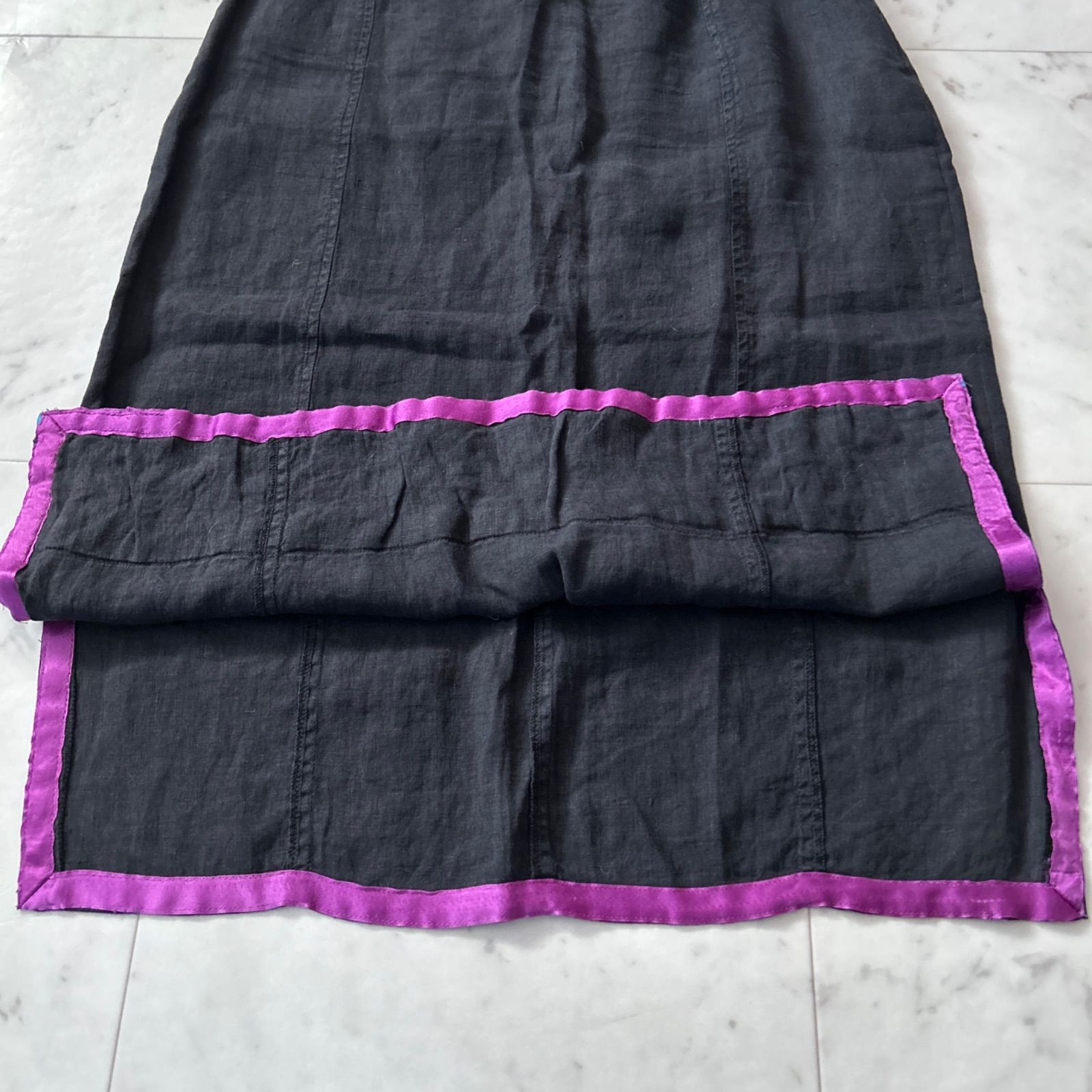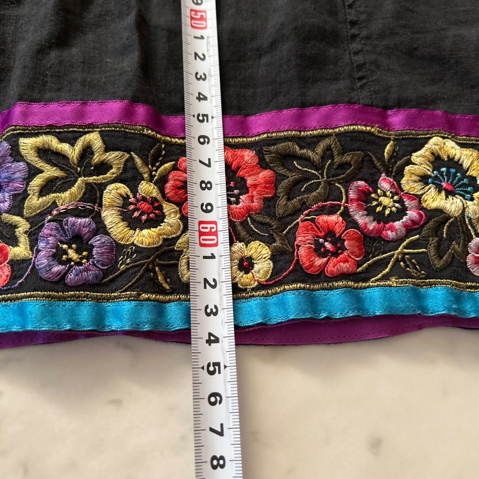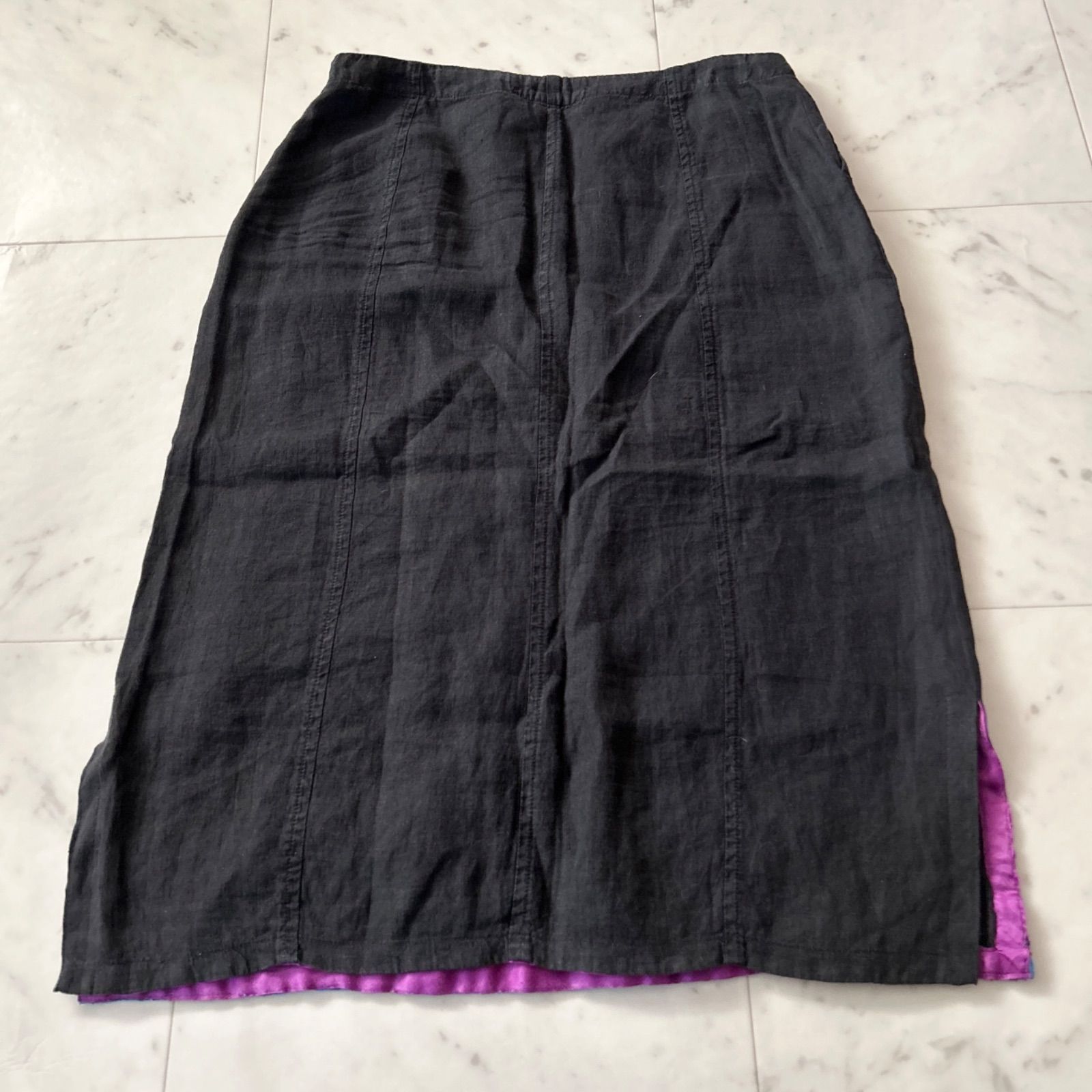 ETRO エトロ 大きいサイズ44 ブラック リネンスカート 刺繍 花柄 エンブロイダリー Lサイズ