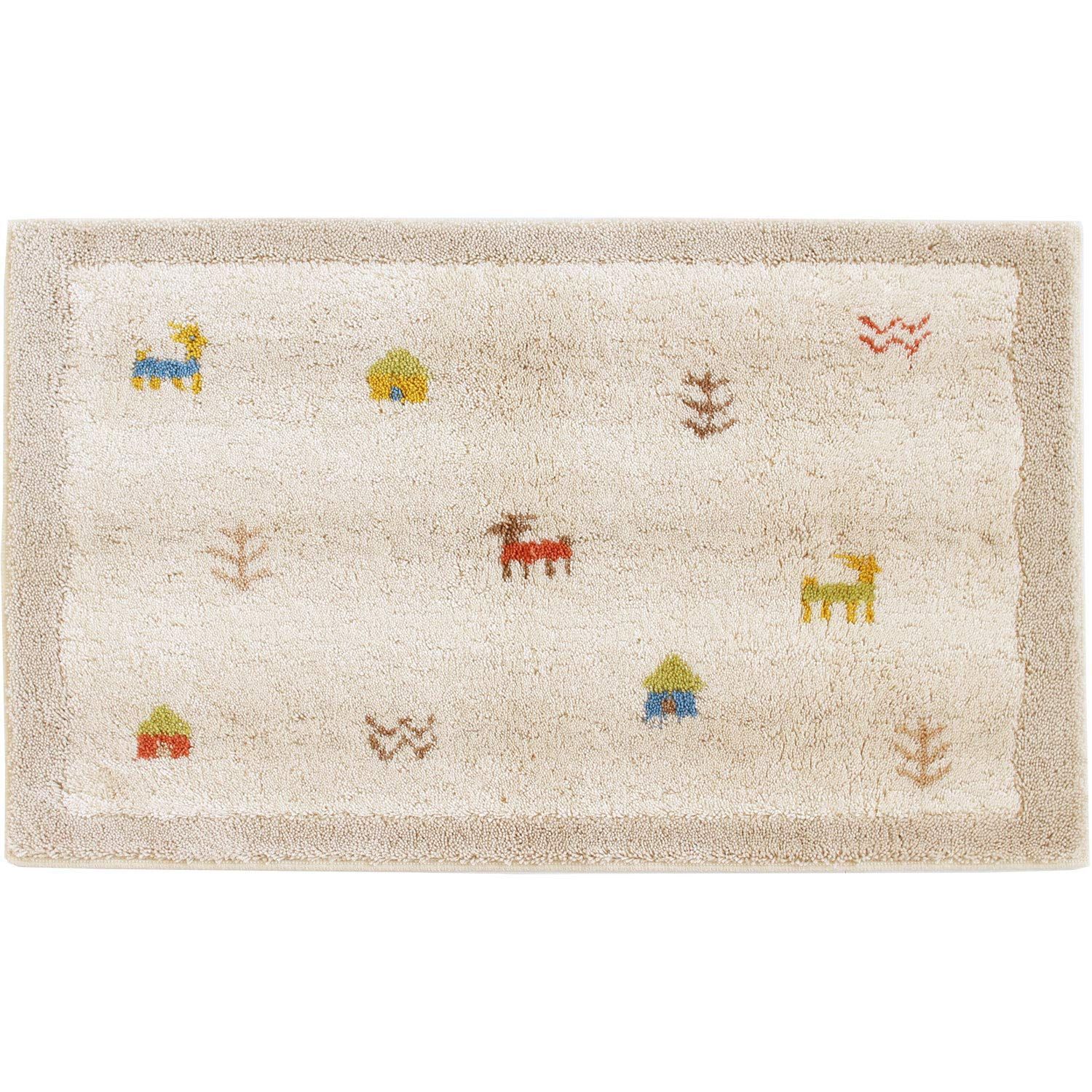オカ(OKA) ギャベ コーナー吸着玄関マット 約45cm×75cm ベージュ (ギャベ柄 エスニック 洗える 吸着 ラグ カーペット 日本製 大判)