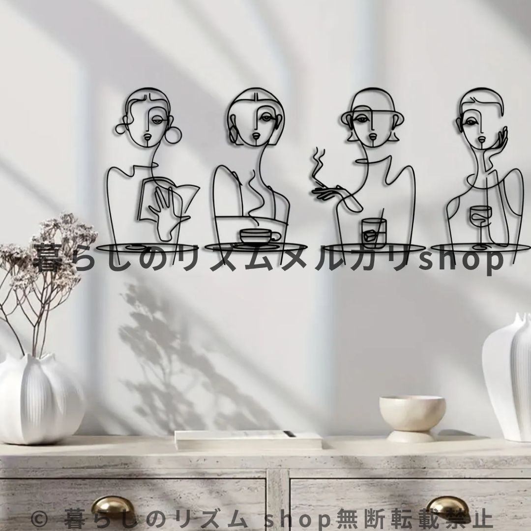 ウォールアート 4ピース 女性ボディ ポジティブメタルウォールアート ミニマリスト ラインドローイングデコレーション エレガント メタルウォールアート ホーム パティオ用 引っ越し祝い ギフト メタル