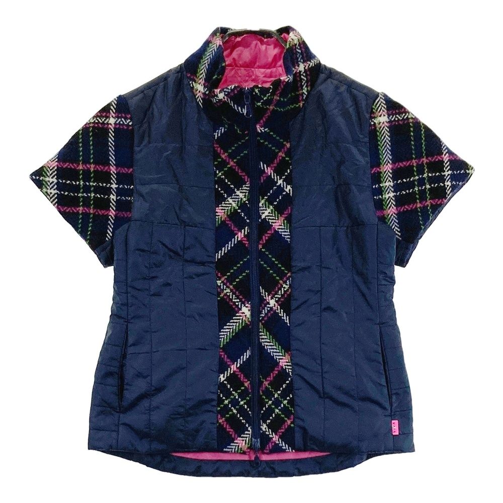 サイズ:40 VIVA HEART ビバハート ; 切替 中綿 半袖ジャケット チェック柄 ネイビー系 [240101574711] ゴルフウェア レディース ストスト