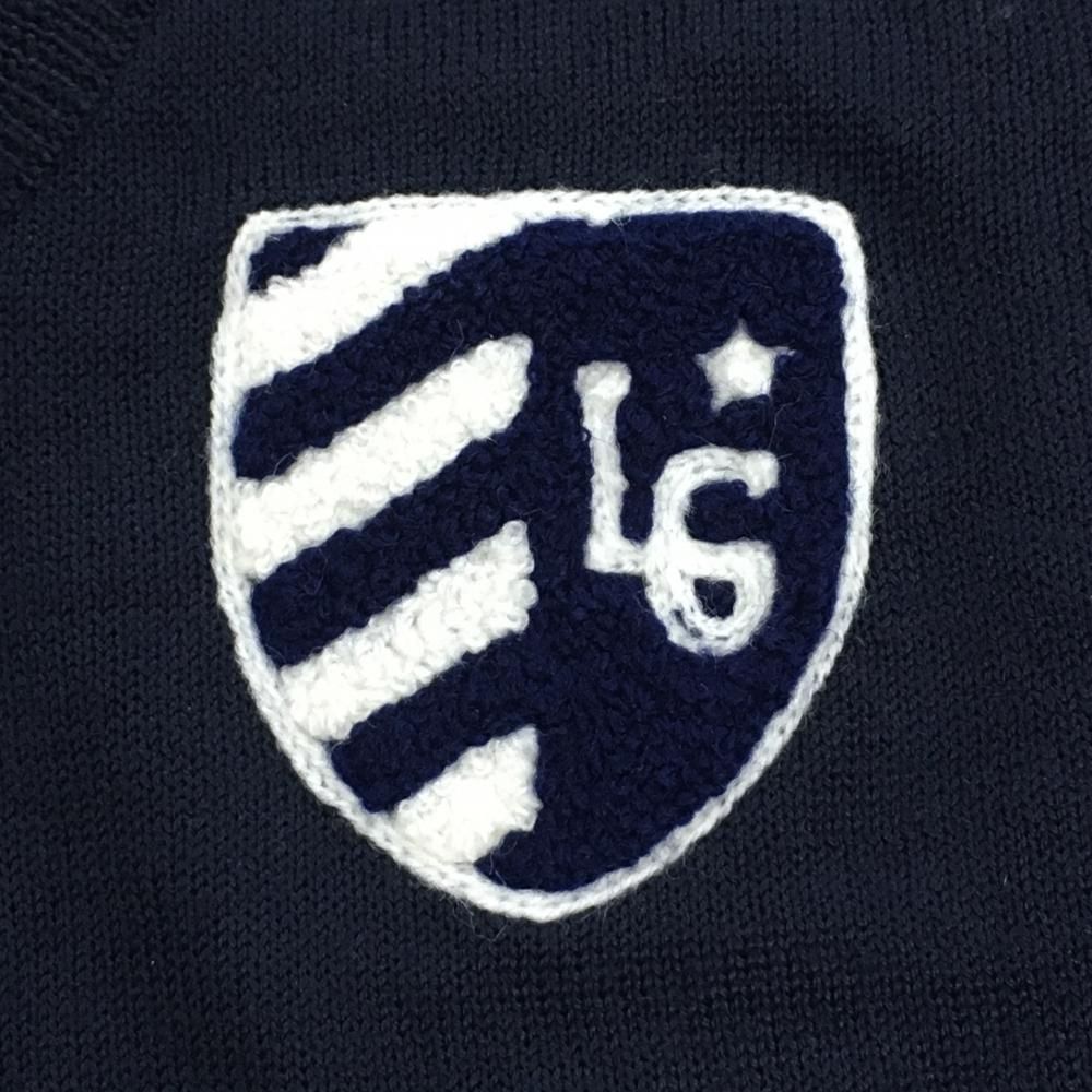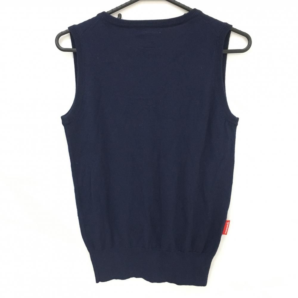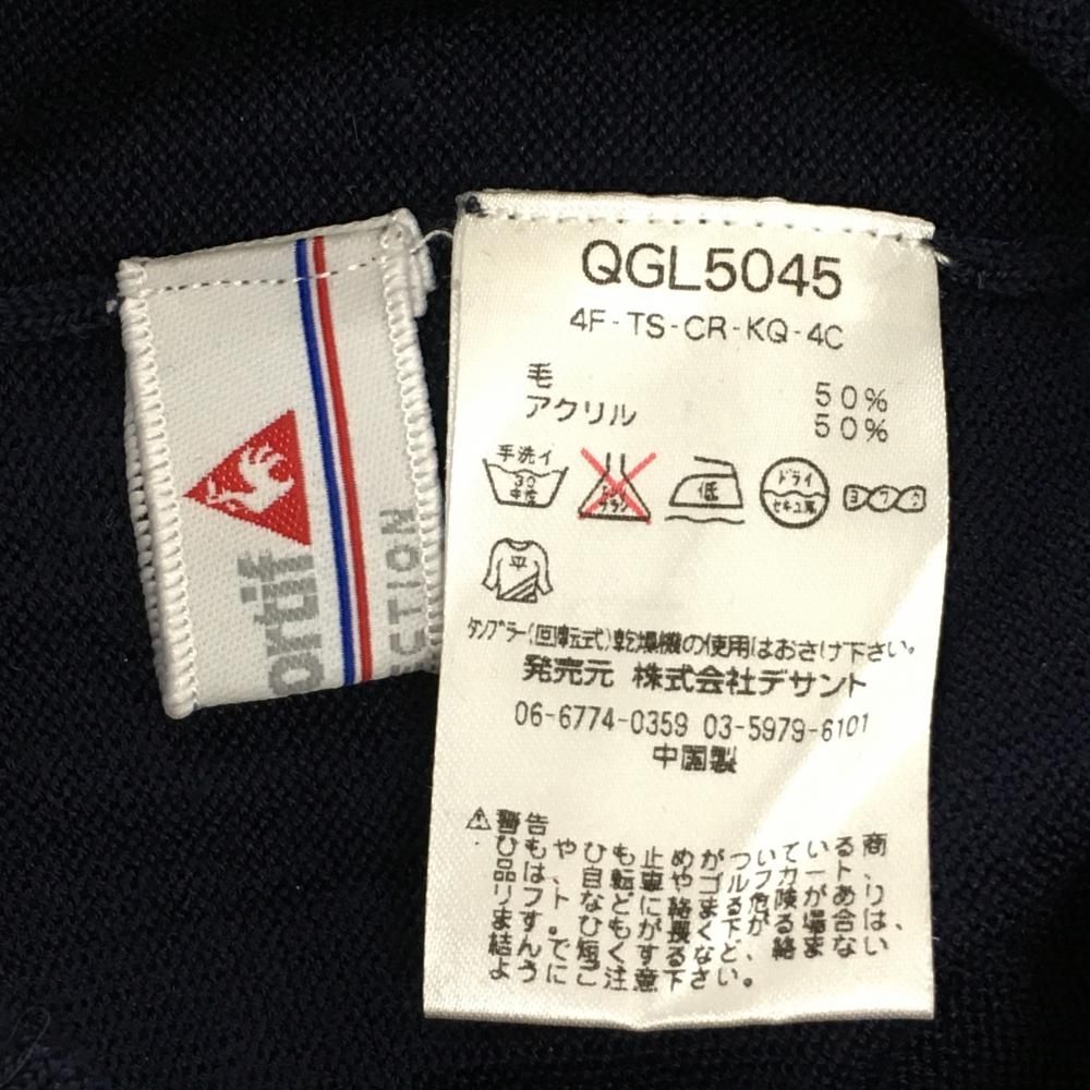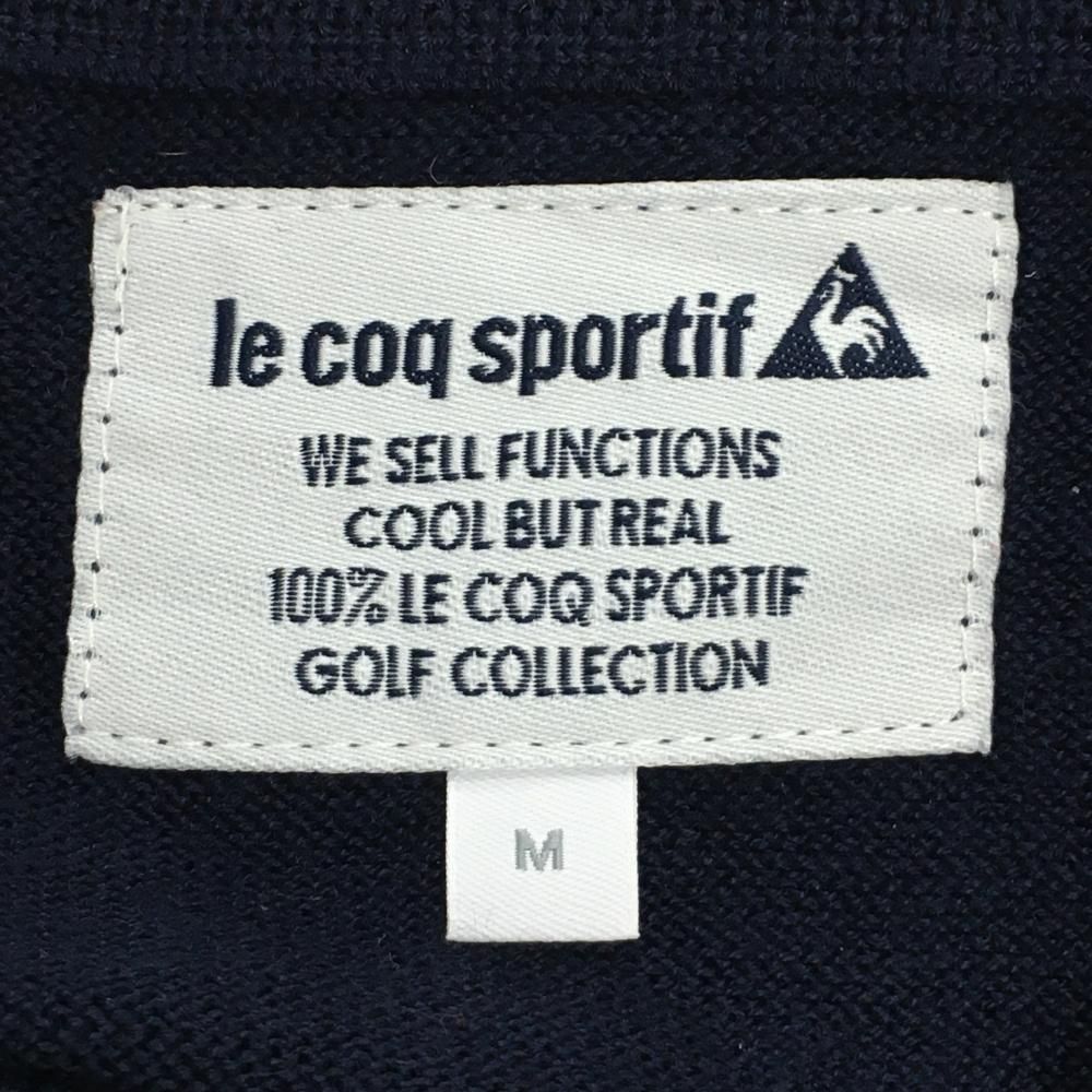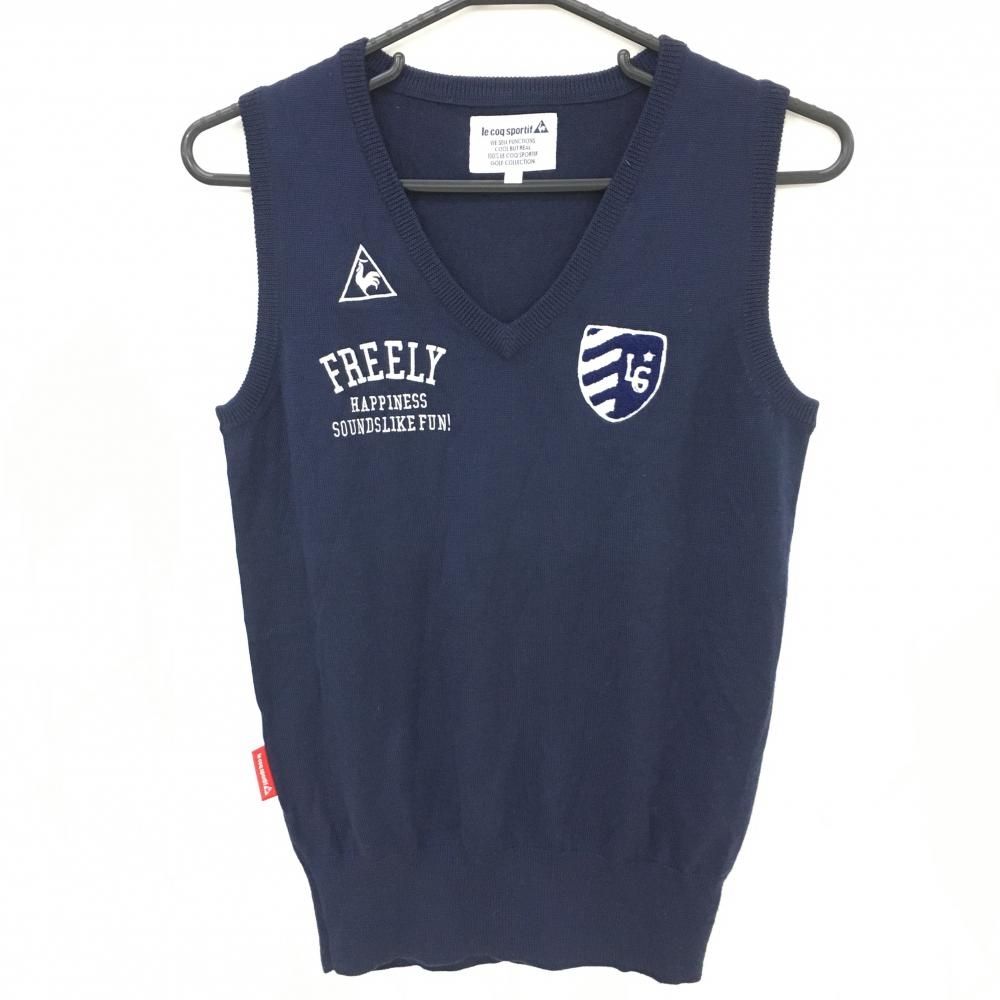 【美品】ルコックゴルフ ニットベスト ネイビー×白 ロゴ刺しゅう Vネック ウール混 レディース M ゴルフウェア le coq sportif