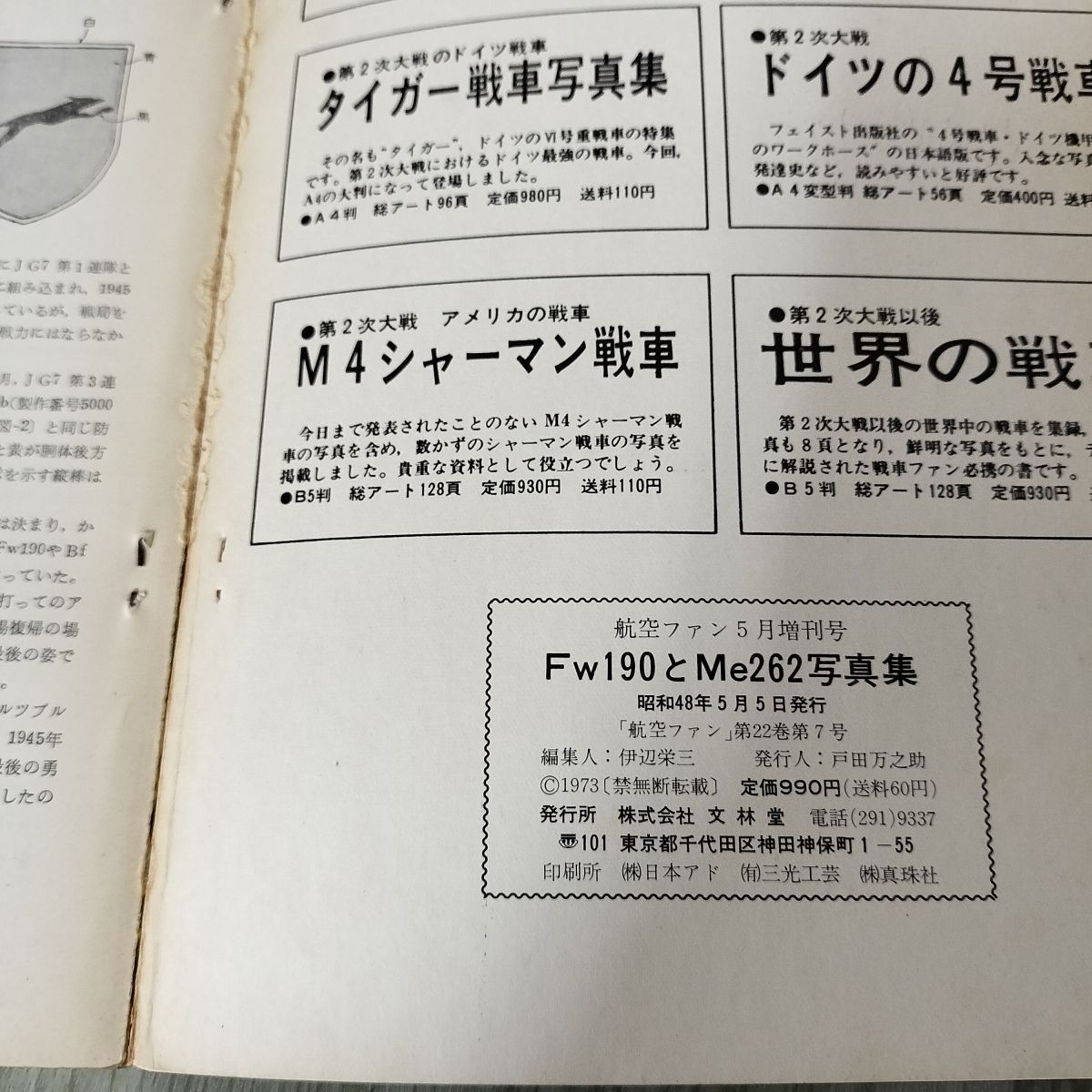 航空ファン Fw190とMe262写真集 第8集 1973年5月号増刊号 昭和48年 220109