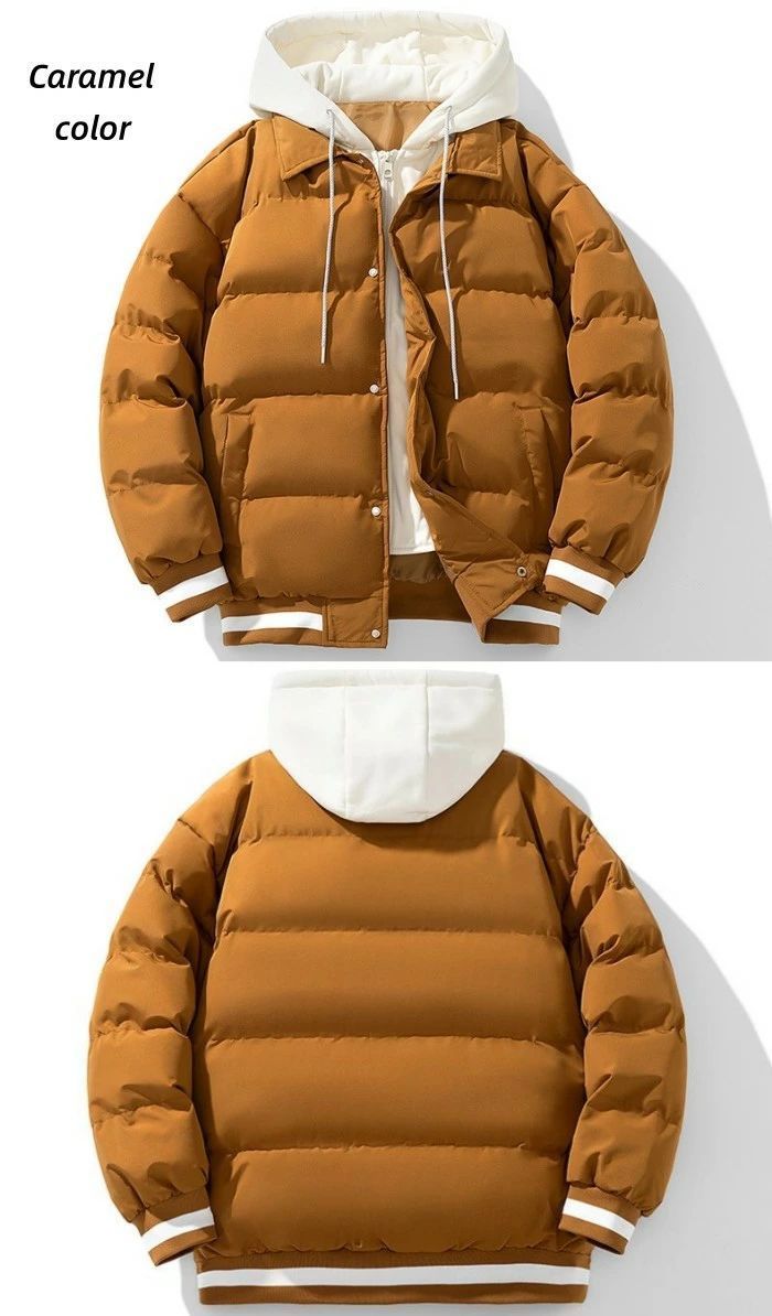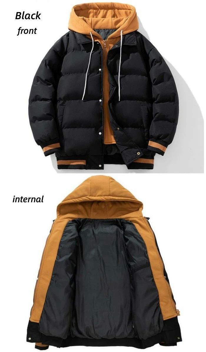 中綿ジャケット レイヤード カジュアルジャケット メンズジャケット ジップアップパーカー 切り替え柄 ショート丈コート フード付き ジャン