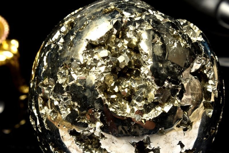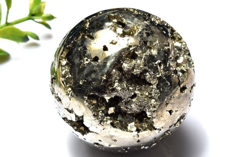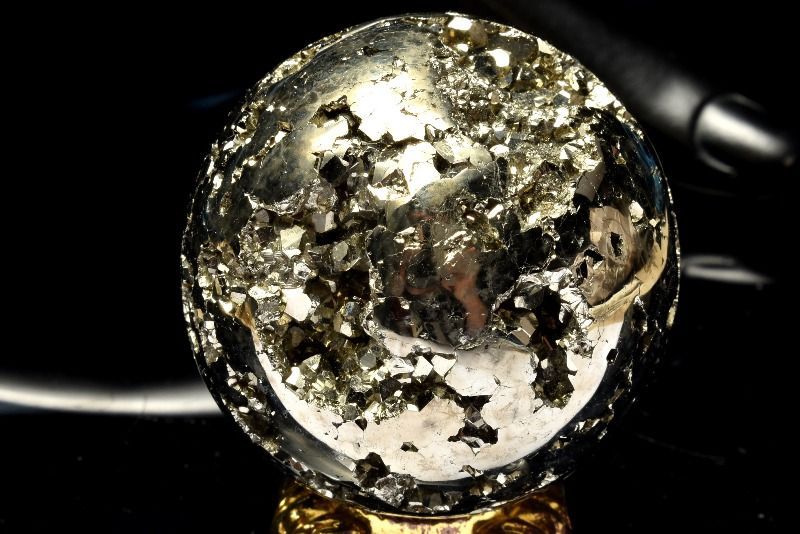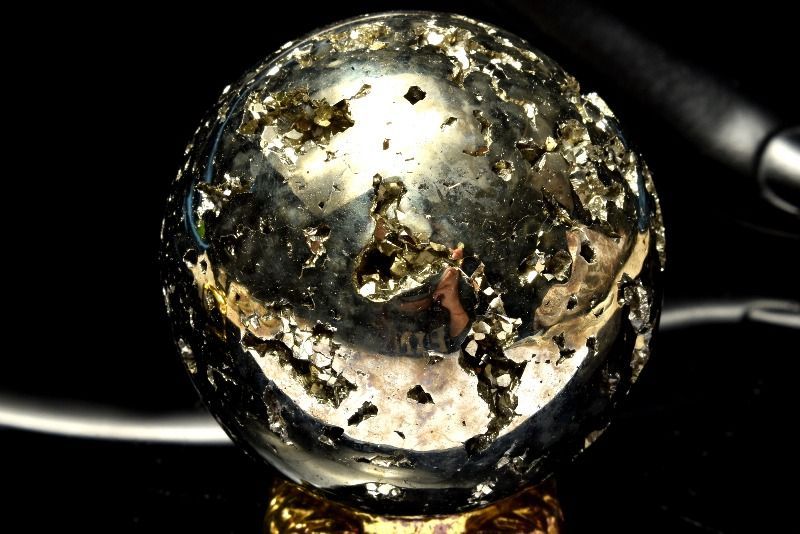【1点物】煌めき真鍮色 パイライト 50mm 丸玉(台座付き) スフィア パワーストーン 天然石 _CG6861【宅急便】