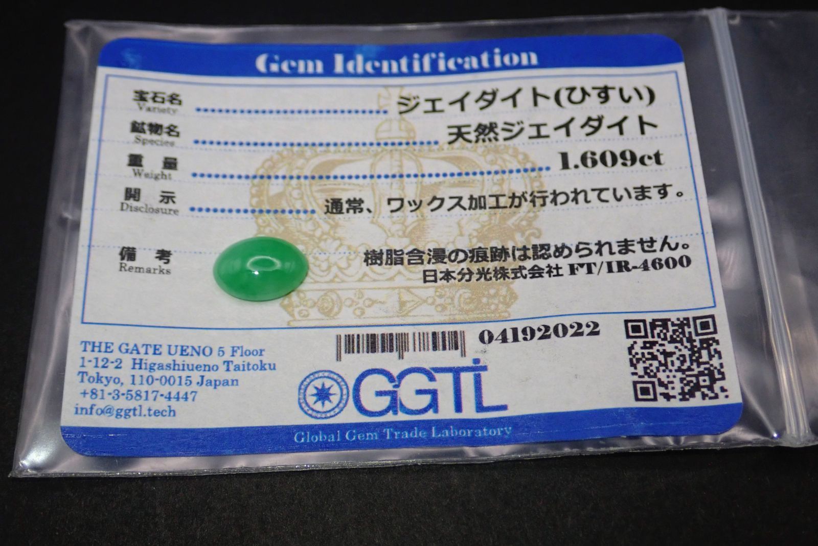 天然ひすい ルース 1.609ct 約7mm×9mm ソーティング付き!