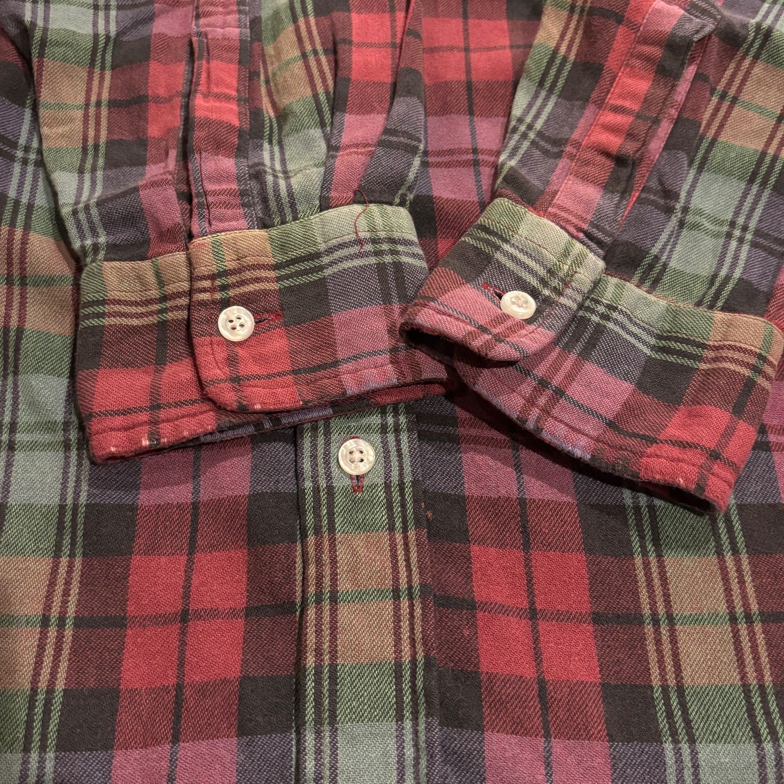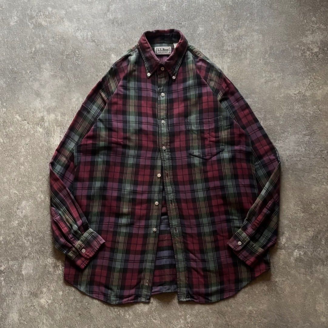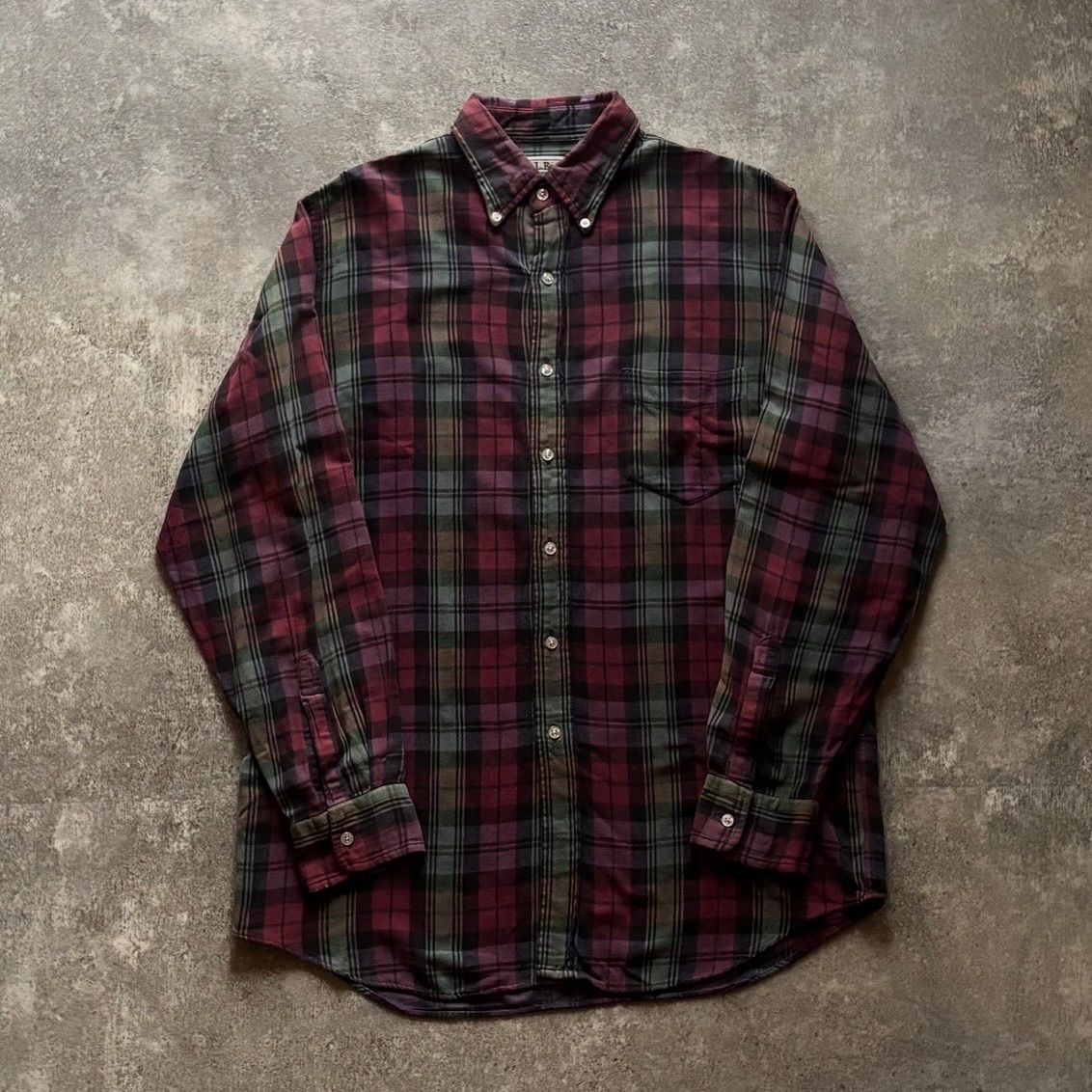 90年代 90s L.L.Bean エルエルビーン チェック ボタンダウン コットン シャツ ワインレッド グリーン ブラック