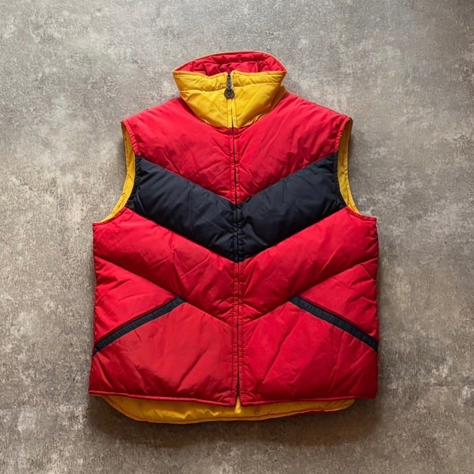 80年代 80s STRUGGLE GEAR リバーシブル ダウンベスト 赤 レッド 黄色 イエロー USA製 アメリカ製