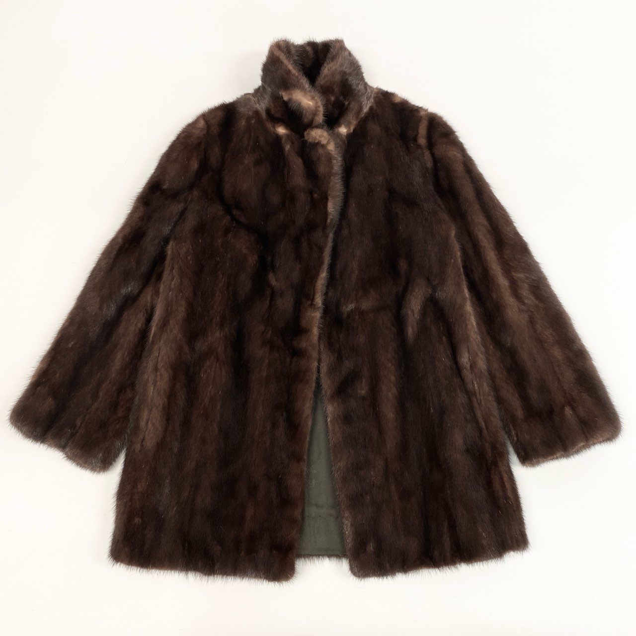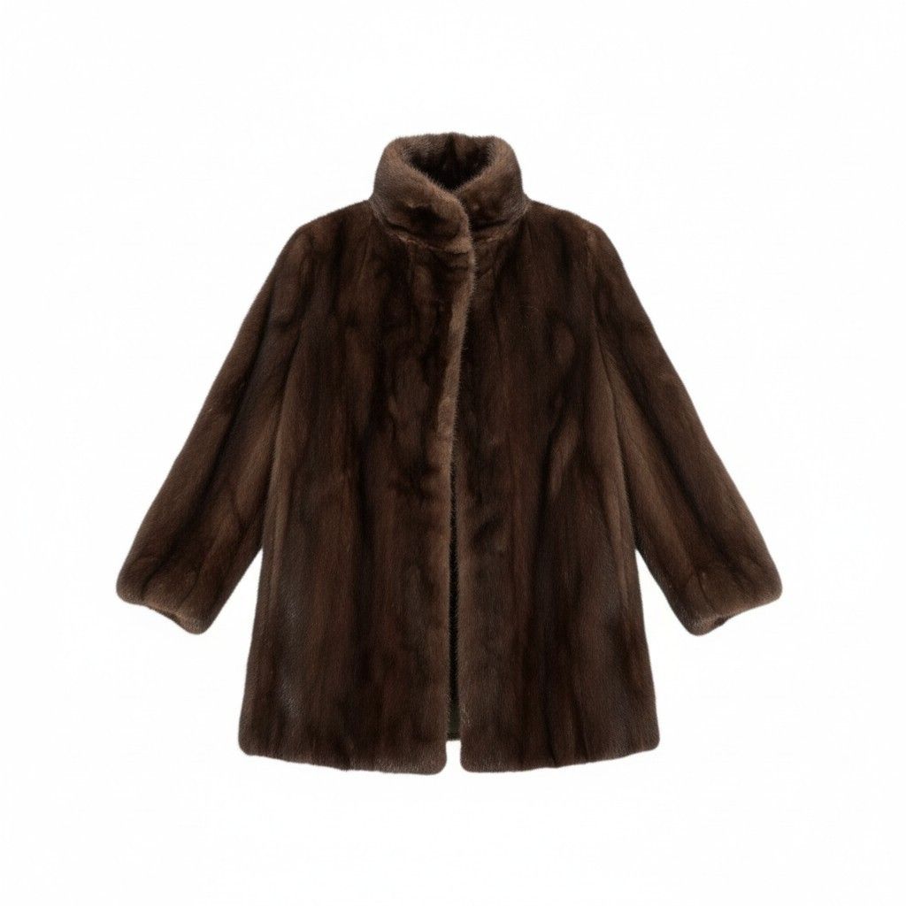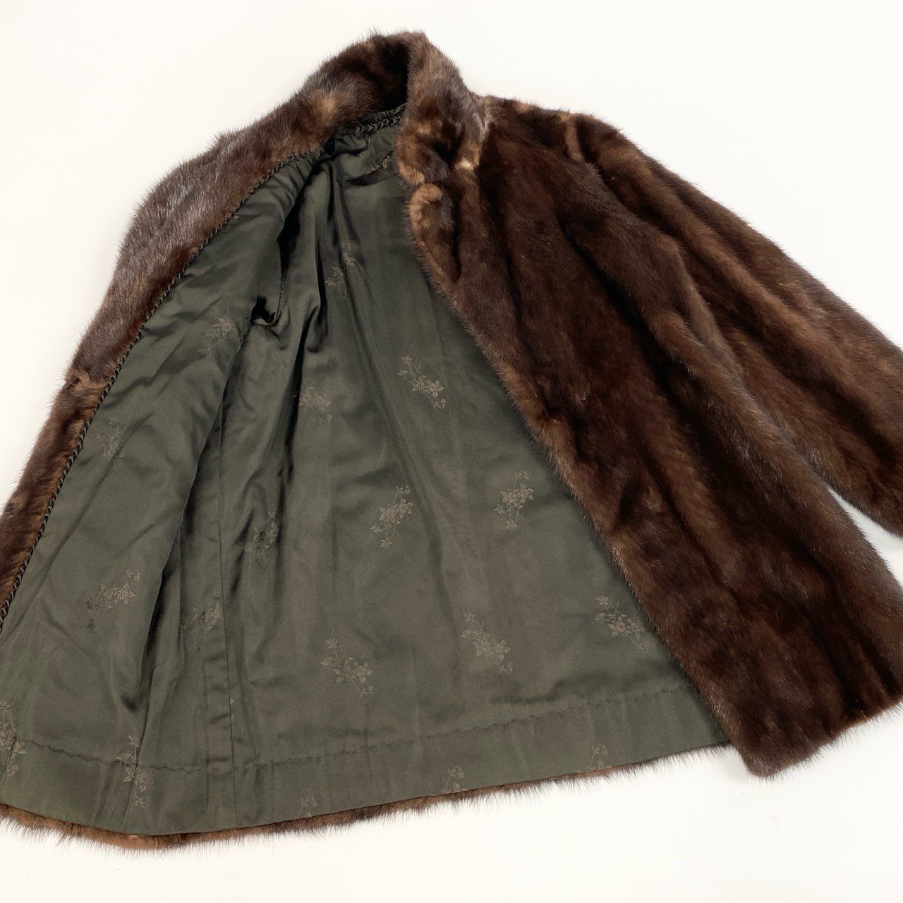 70l1《本毛皮》 デミバフミンク ミンクコート ハーフコート ミンクファー 裏地花柄 MINK FUR 9 ブラウン系u02t