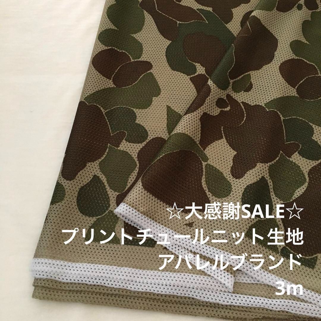 Z3L/4007◆3m 感謝祭/ポリプリントチュールニット生地/アパレル/生地のM