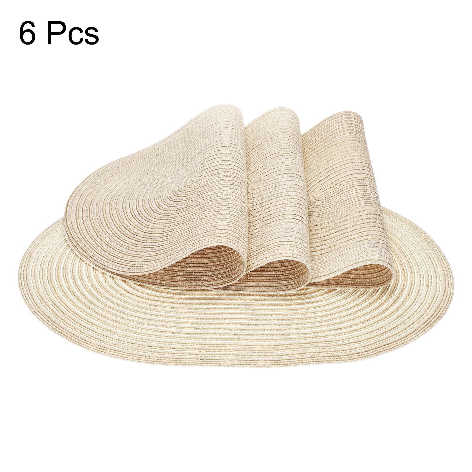 uxcell 6個 オーバル ブレイデッド プレイスマ ット 20インチ 非スリップ オーバル テーブルマ ット ダイニングテーブル用 洗える 保温 編み込みプレイスマ ット 室内外 ファミリーホリデーディナー用 イエロー