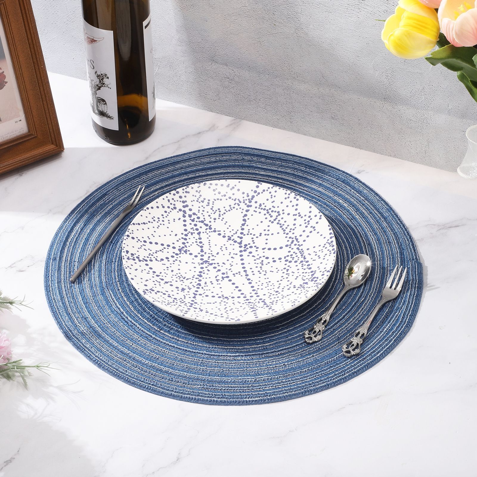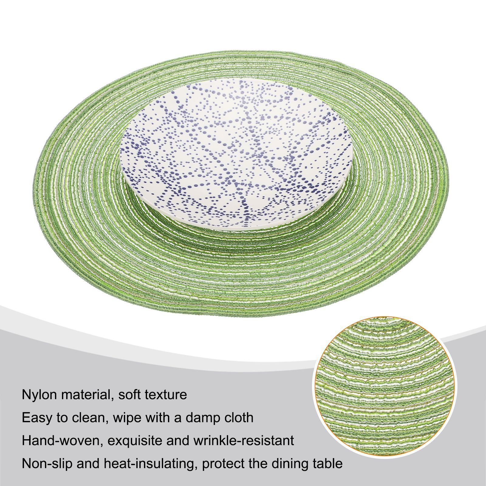 uxcell 6個 丸編みプレイスマ ット 15インチ 非滑り丸テーブルマ ット ダイニングテーブル用 洗える 保温 編み込みプレイスマ ット 室内外用 家族 ホリデーディナー用 緑