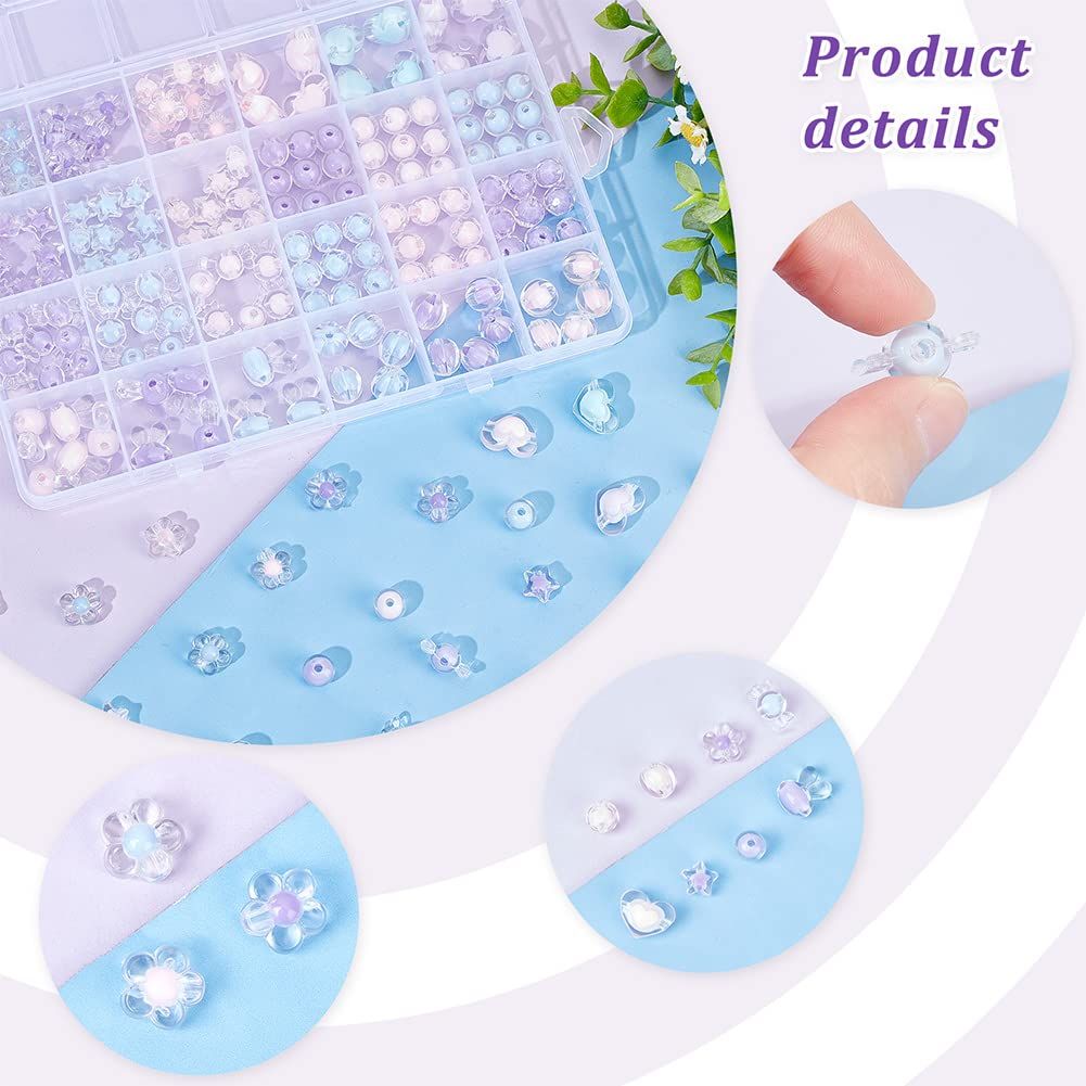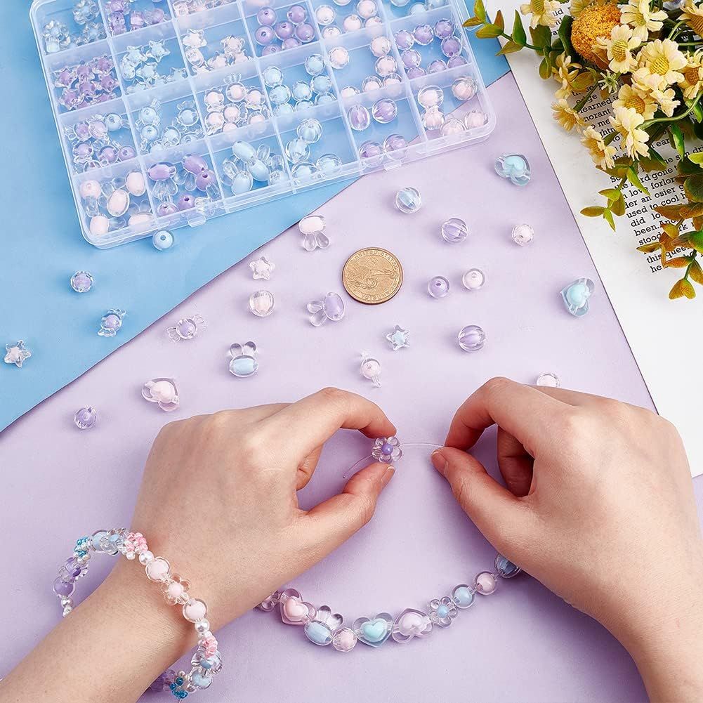 PH PandaHall 約195個セット アクリルビーズ 8種 淡い色 手芸ビーズ カラフル 柔らかい色 アクセサリーパーツ ブレスレット ネックレス 髪飾り スマホのストラップ ヘアゴム ハンドメイド 素材 収納ケース付き