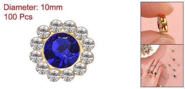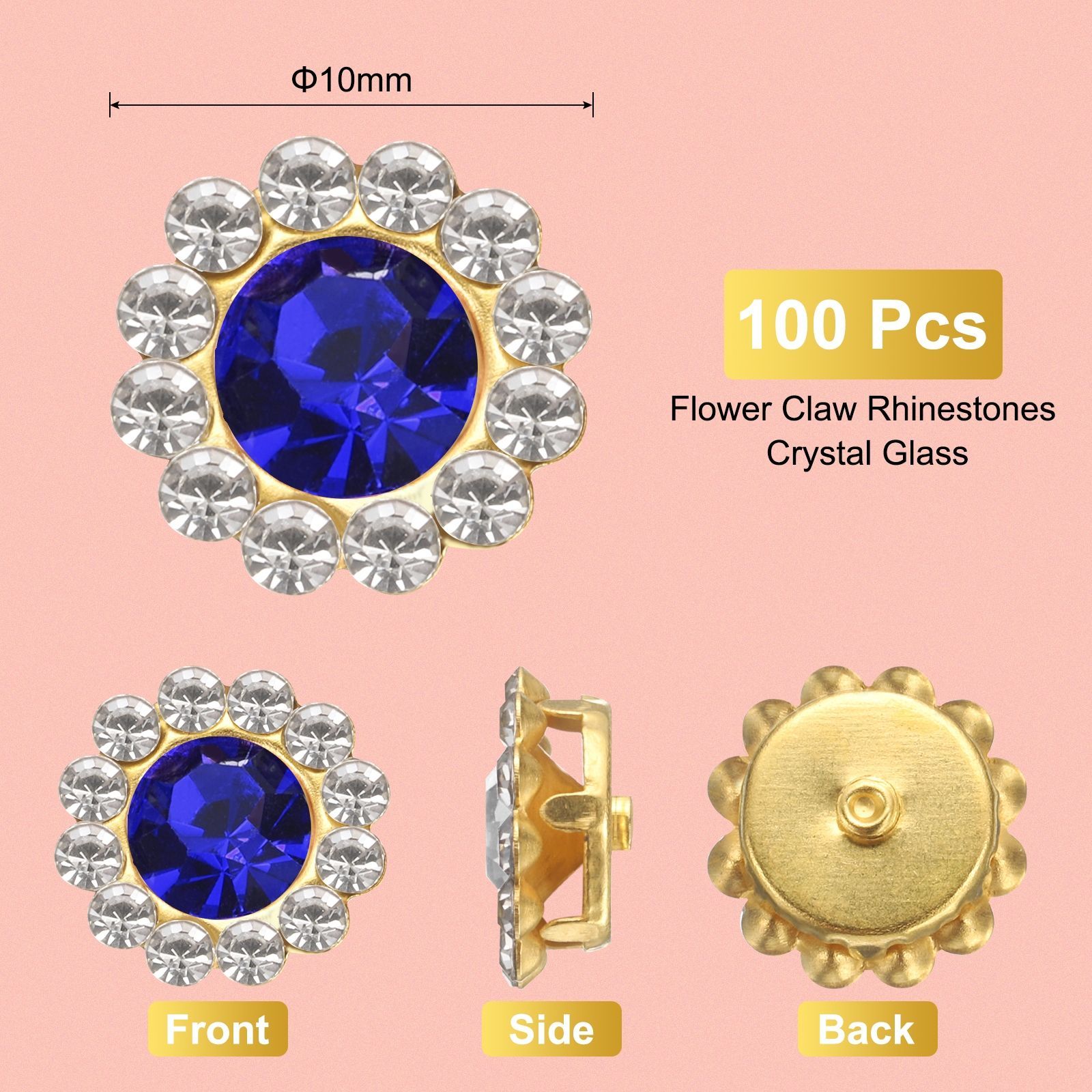 uxcell 100個の縫い付け用ラインストーン 10mmの花爪ラインストーンクリ スタルガラスメタルベース縫い付け宝石ボタン 縫い付けアクセサリー服靴イヤリングベルトクラフト ダークブルー