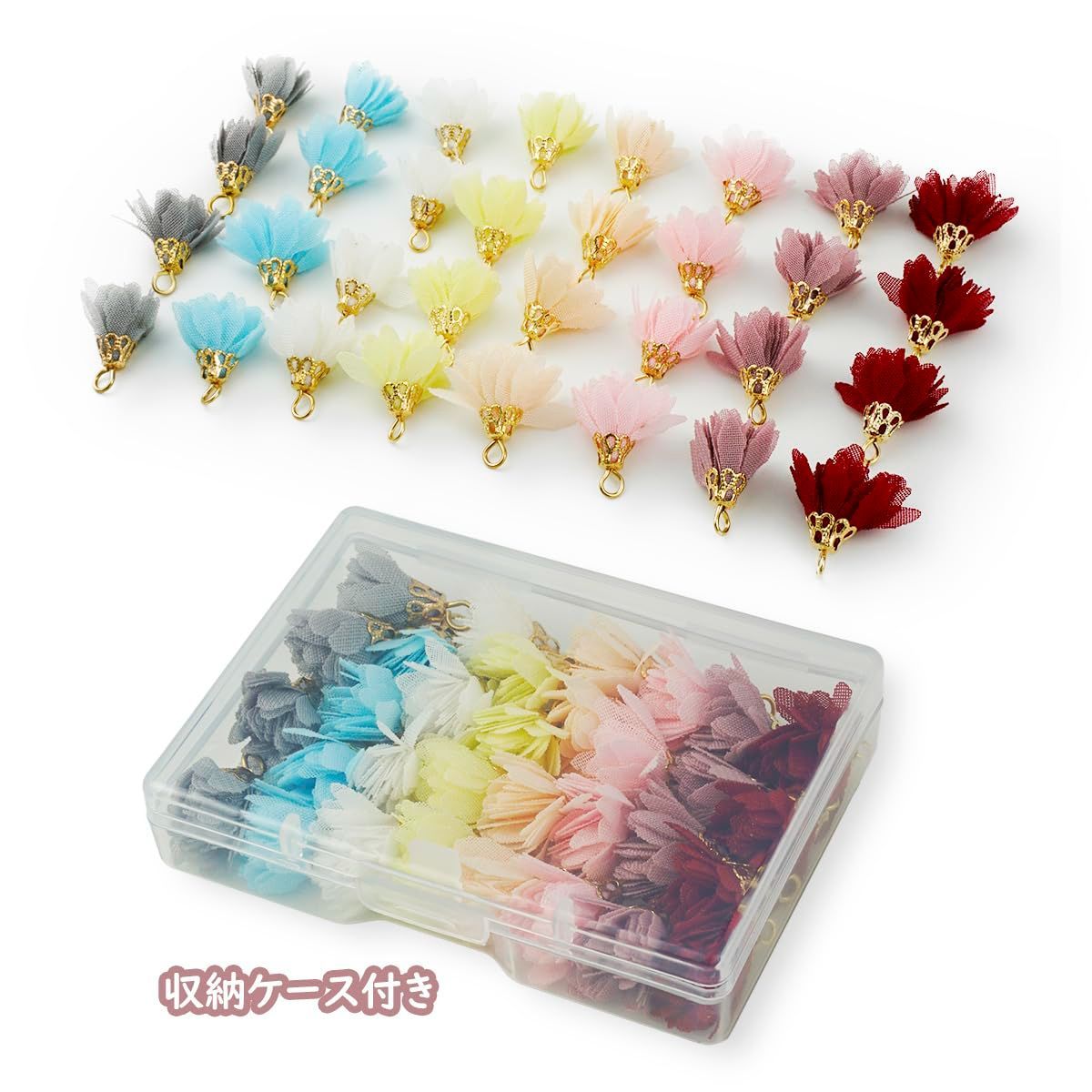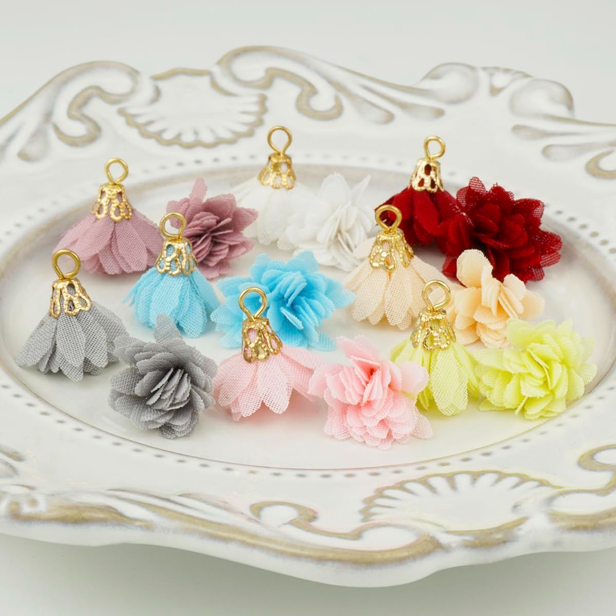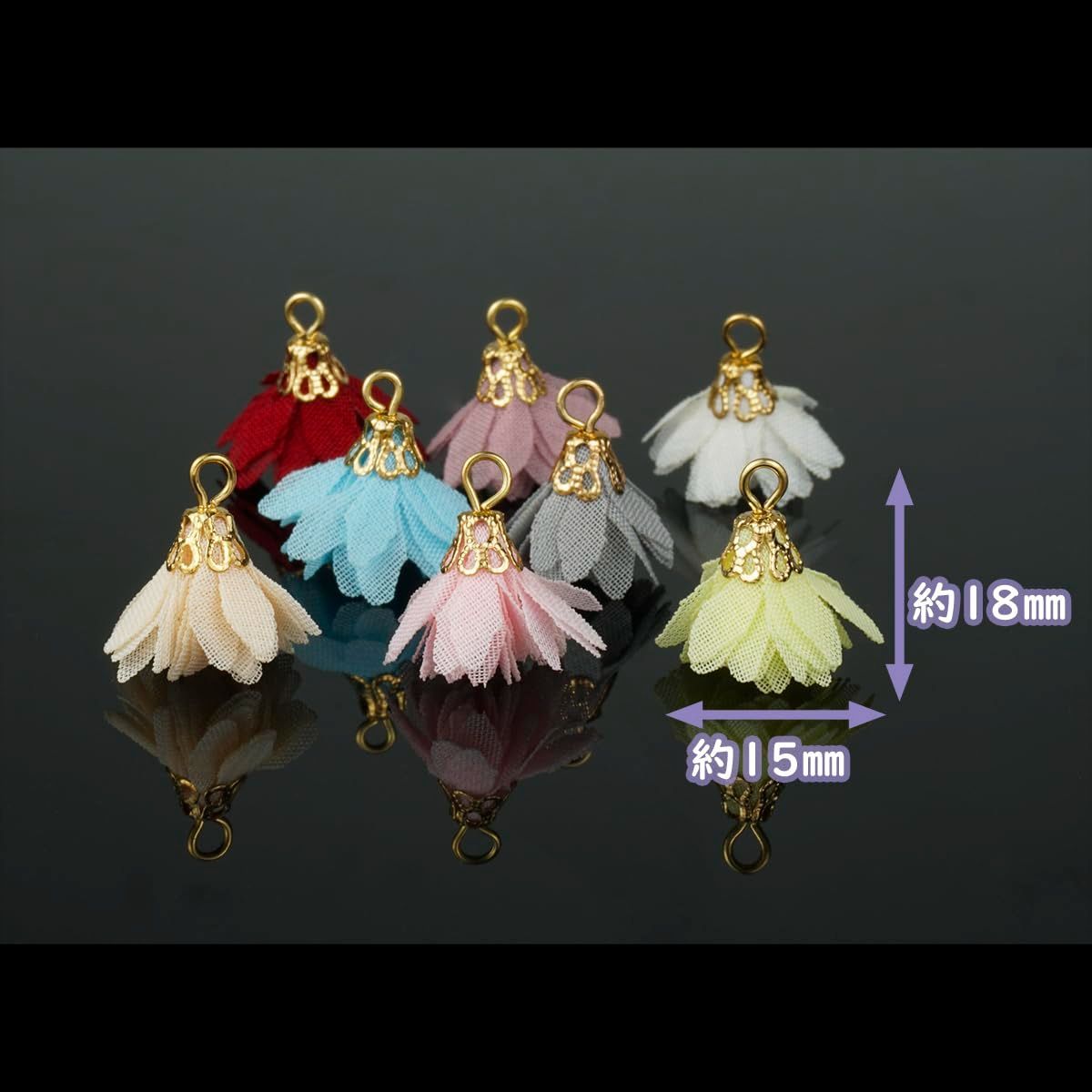 【新着商品】フラワー タッセル チャーム ミニ フリンジ オーガンジー 18mm 花形 8色32個 カン付き ピアス イヤリング パーツ