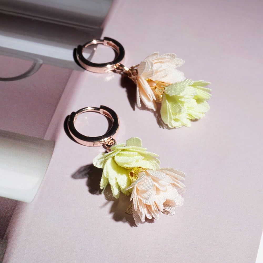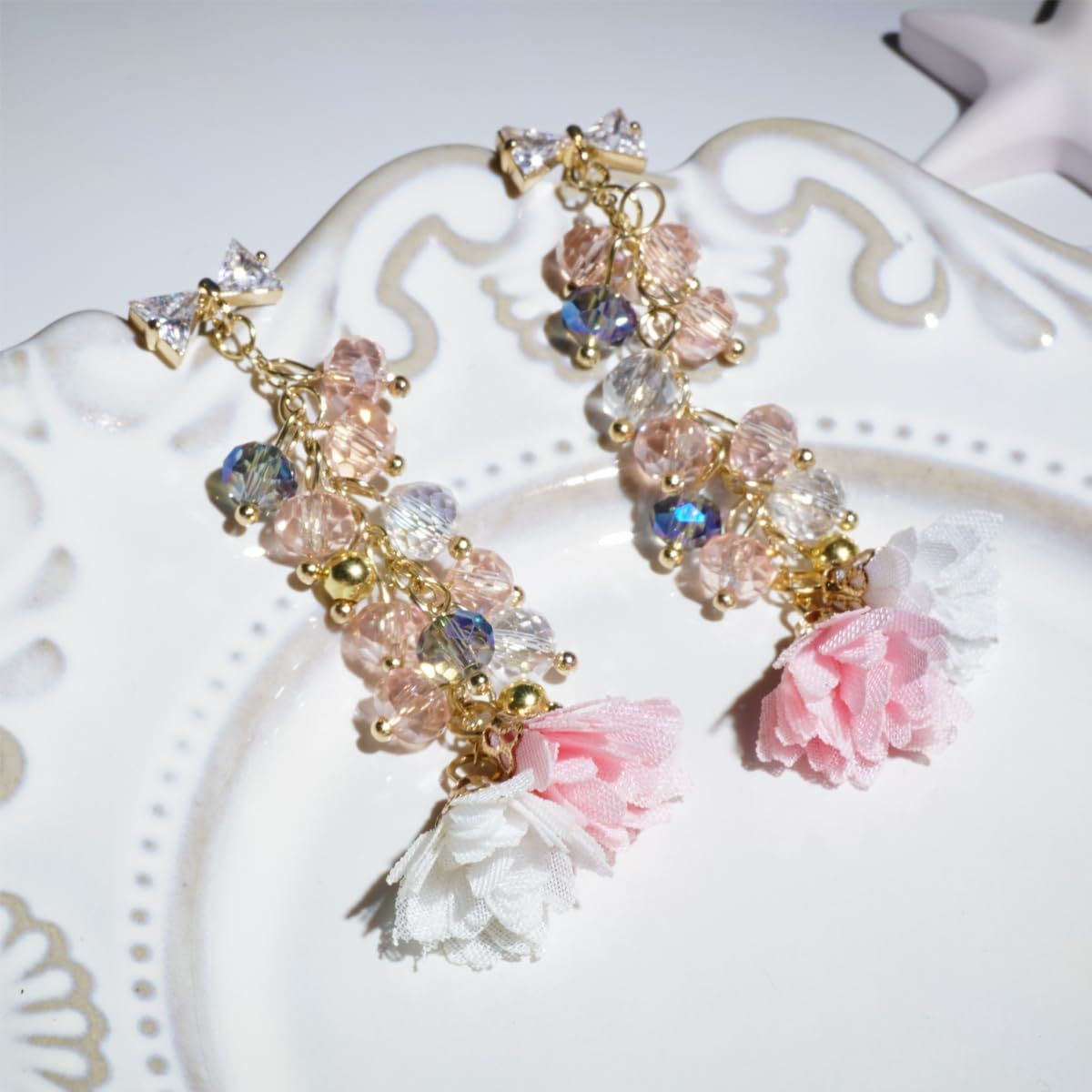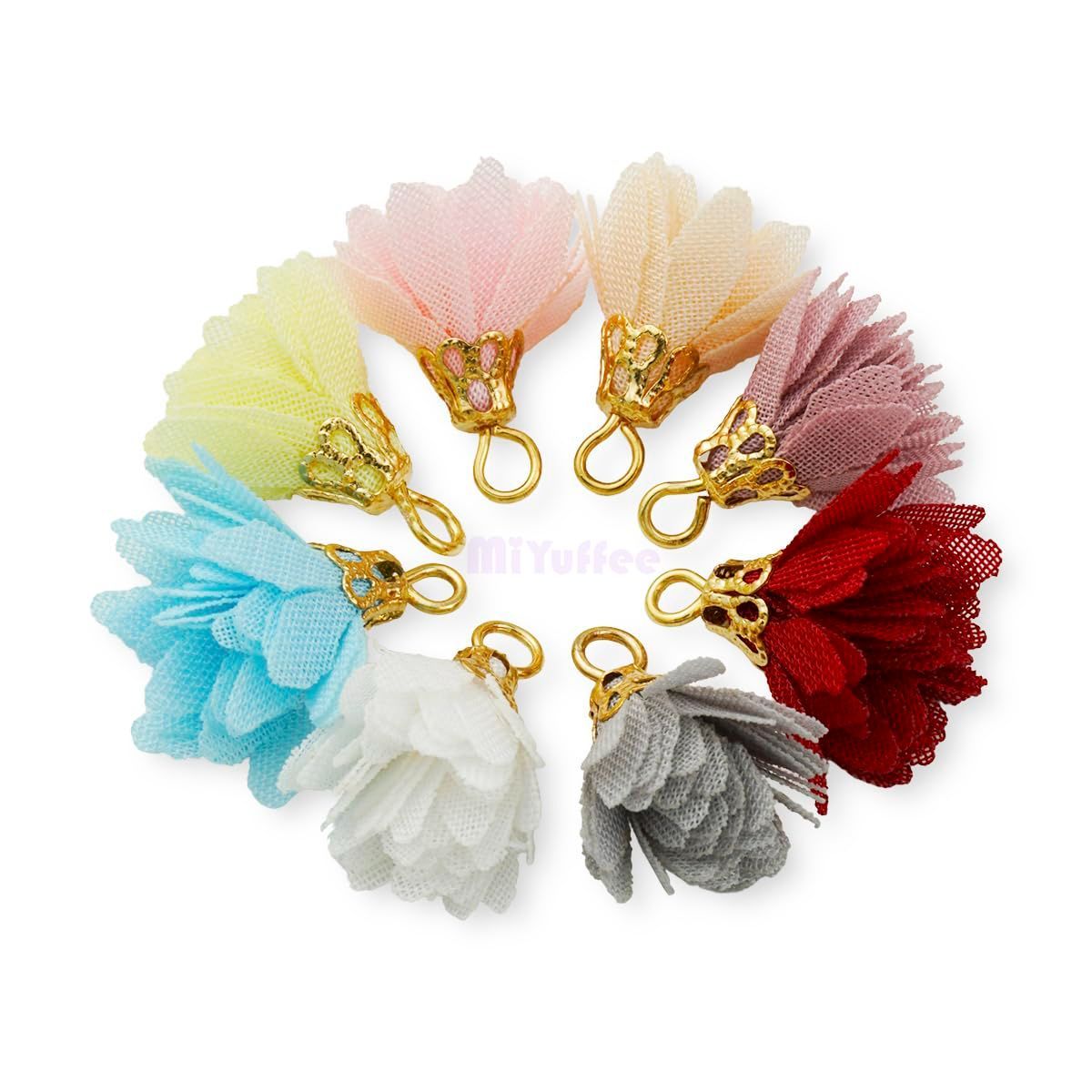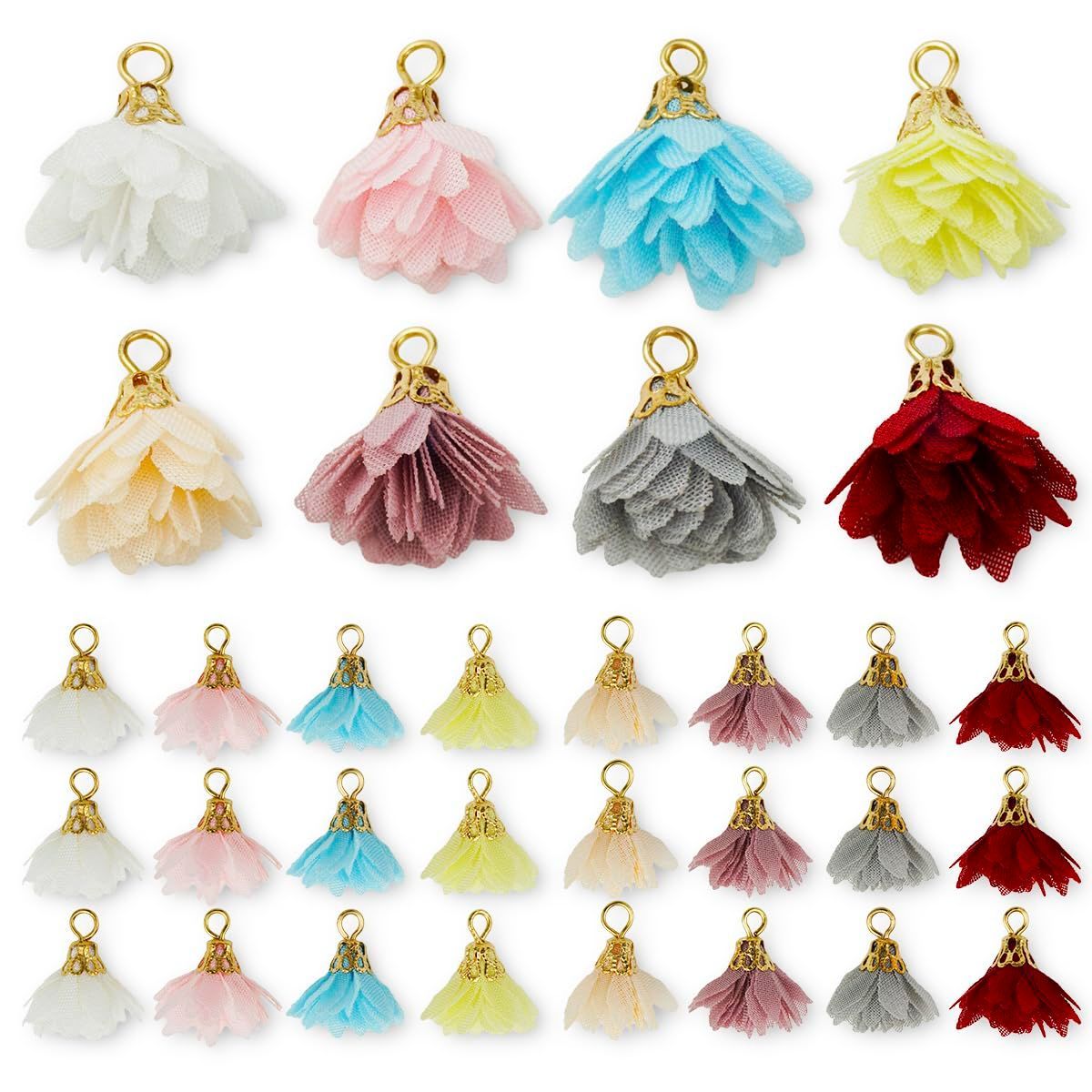 【新着商品】フラワー タッセル チャーム ミニ フリンジ オーガンジー 18mm 花形 8色32個 カン付き ピアス イヤリング パーツ