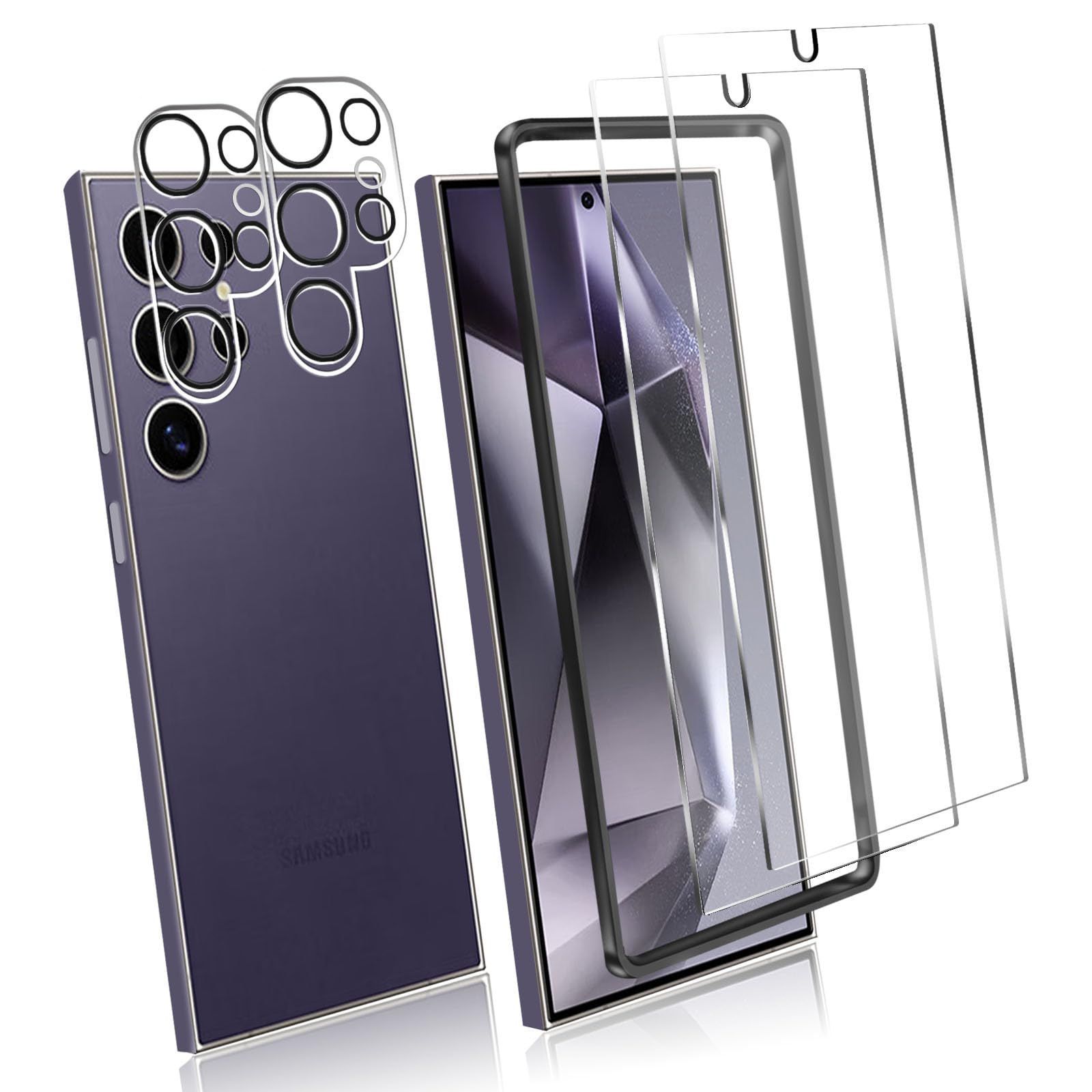 対応 2枚 Galaxy S24 Ultra スクリーンガラスフィルム ギャラクシー s24 Ultra 専用保護フィルム + 2枚 Galaxy S24 Ultra カメラ フィルム 強化ガラス 液晶保護フィルム S24 Ultra 対応 專用フィルム 厚さ0.33㎜ 硬度9H 気泡ゼロ ガラス飛散防止 指紋防止高精細 表裏面保護 透明フィルム PCduoduo