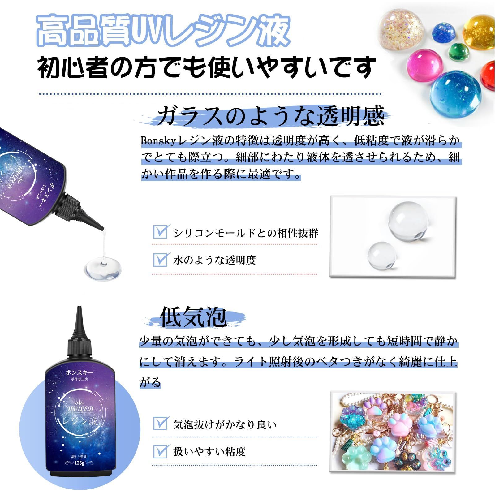 【在庫処分】Bonsky(ボンスキー) UVレジン液 375g レジン液 UV/LED対応 レジン液 高い透明 詰替用 大容量 ハードタイプ成形 UVレジン液DIY手作り装飾急速に硬化 低アレルギー性