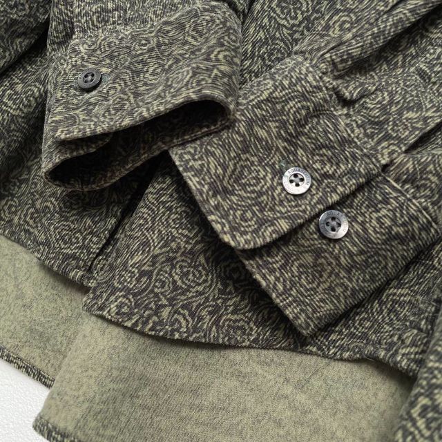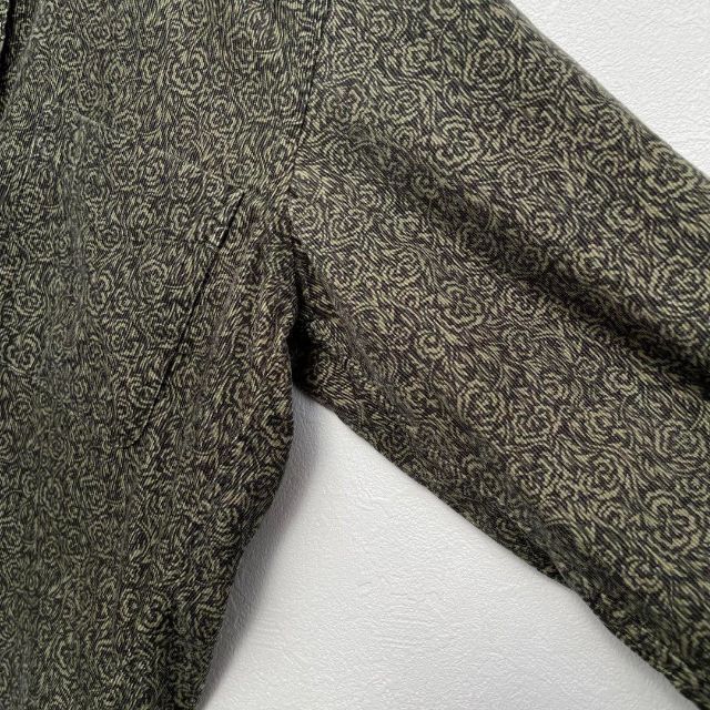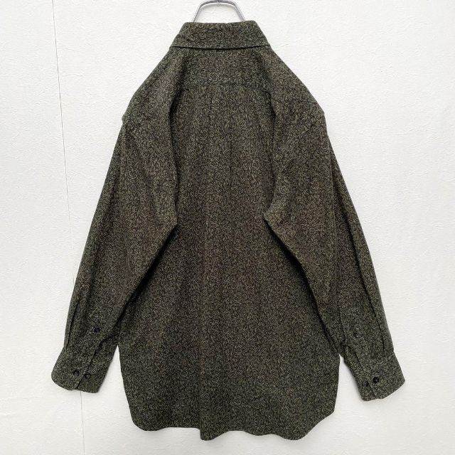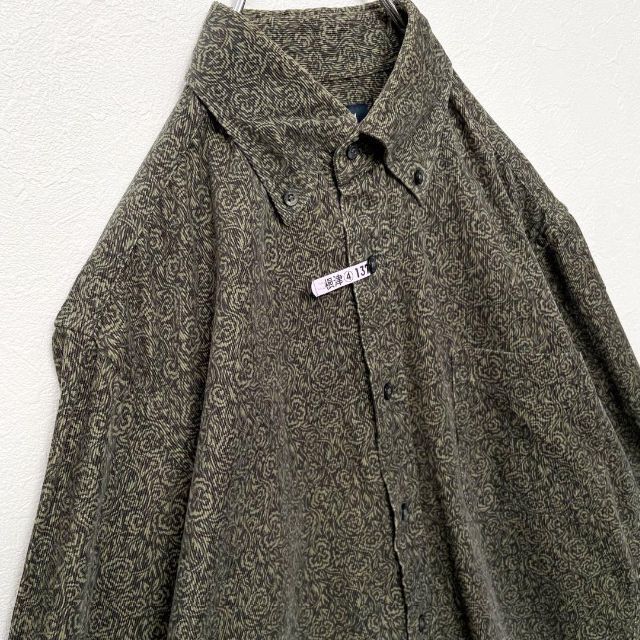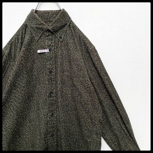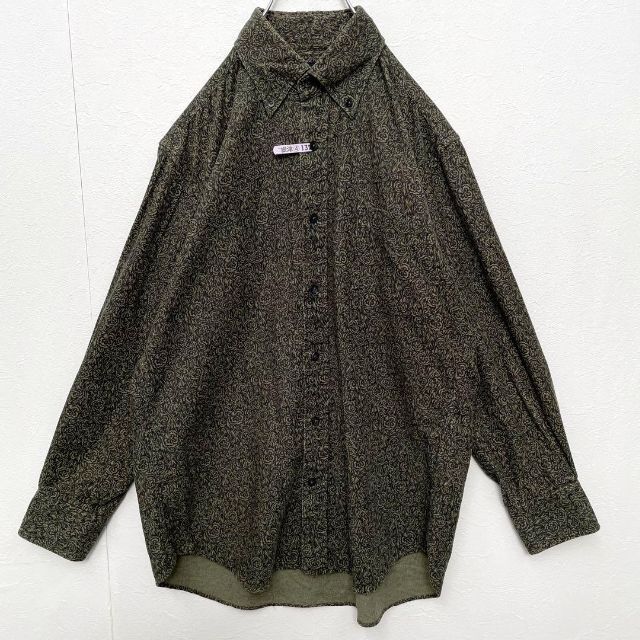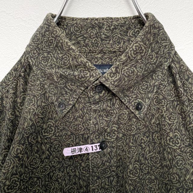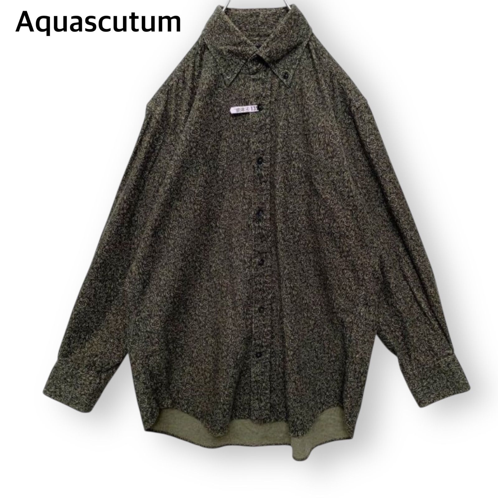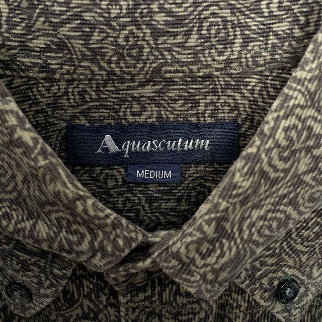アクアスキュータム Aquascutum 細畝 コーデュロイ 総柄 長袖シャツ ボタンダウン Mサイズ ダマクス柄 メンズ