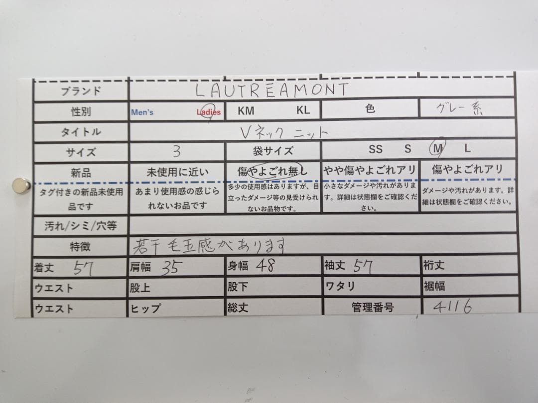 4116 LAUTREAMONT(ロートレアモン) Vネックニット L