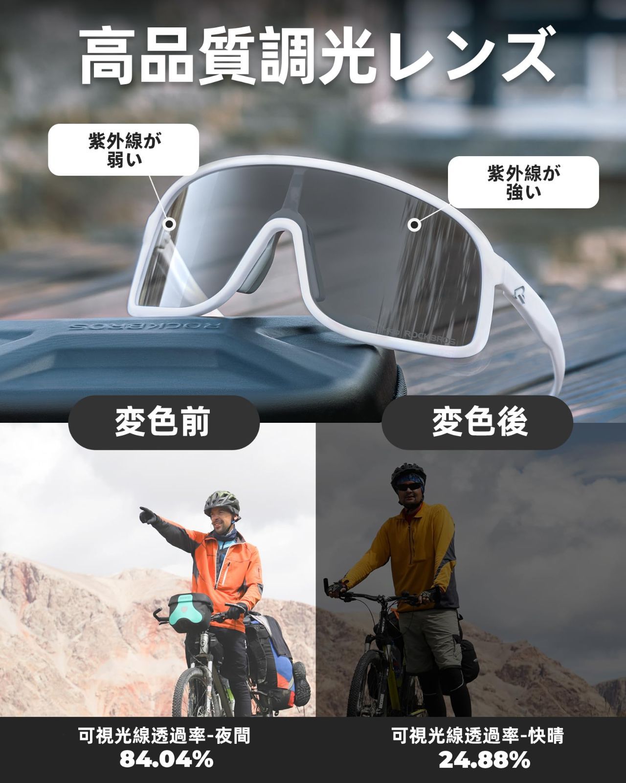 UV400 紫外線カット 変色サングラス 超軽量 スポーツ 高靭性 耐衝撃 ロードバイク サングラス 自転車 釣り スポーツサングラス バイク ランニング 野球 調光サングラス ゴルフ 登山 メンズ [ROCKBROS] レディース 収納ポーチ付き