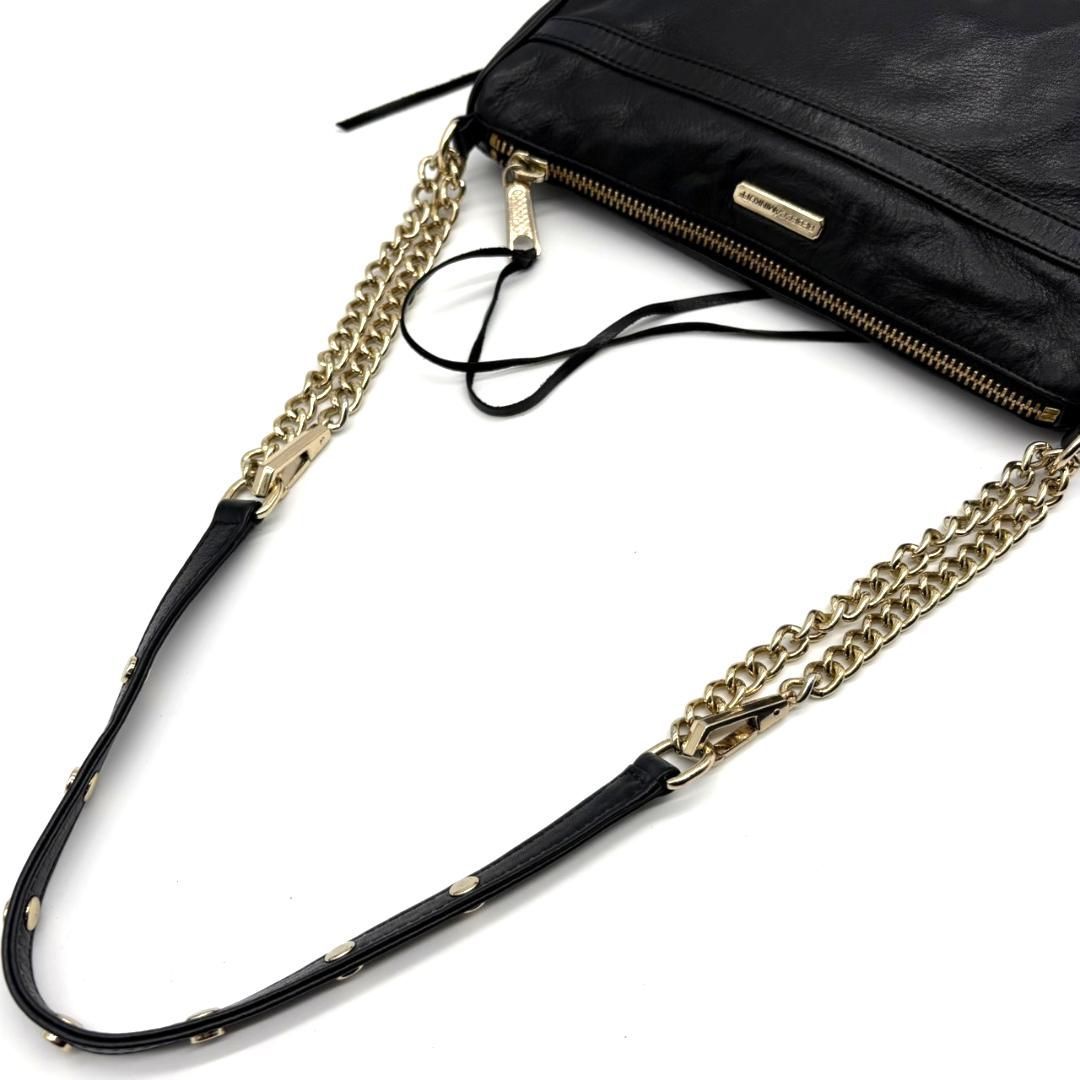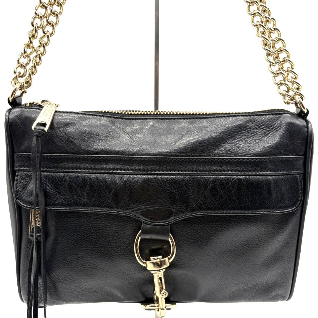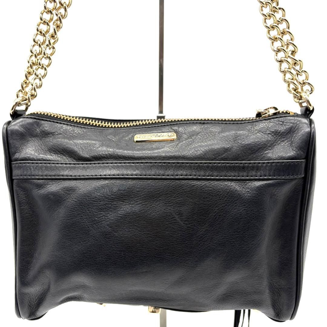 【美品】レベッカミンコフ レザー チェーンショルダーバッグ ブラック 斜め掛け クロスボディ ゴールド金具 上品 きれいめ 大人可愛い 中容量 お出かけ 普段使い 軽量 肩掛け 高見え バッグ Rebecca Minkoff
