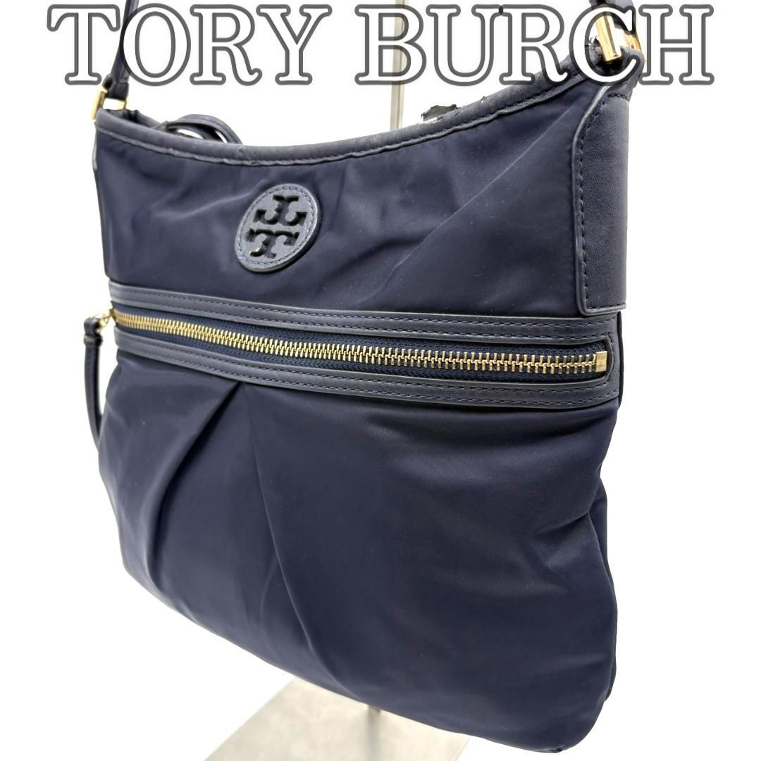 トリーバーチ ショルダーバッグ ナイロン ネイビー 紺 斜め掛け クロスボディ 肩掛け 軽量 普段使い 通勤 旅行 きれいめ 大人可愛い シンプル 中容量 A5収納 ファスナー開閉 外ポケット 高見え Tory Burch