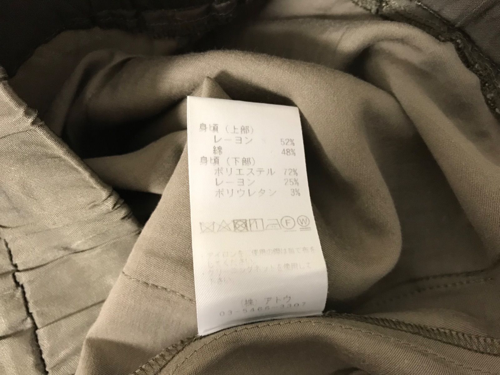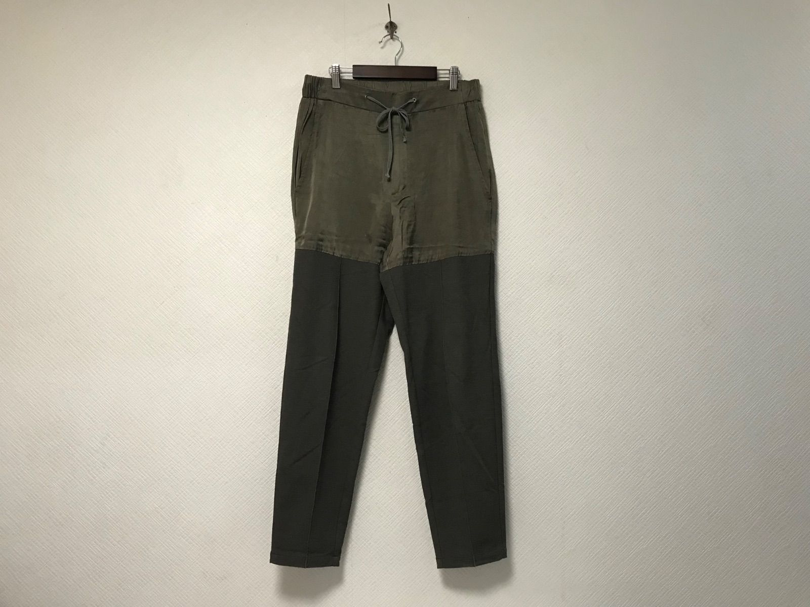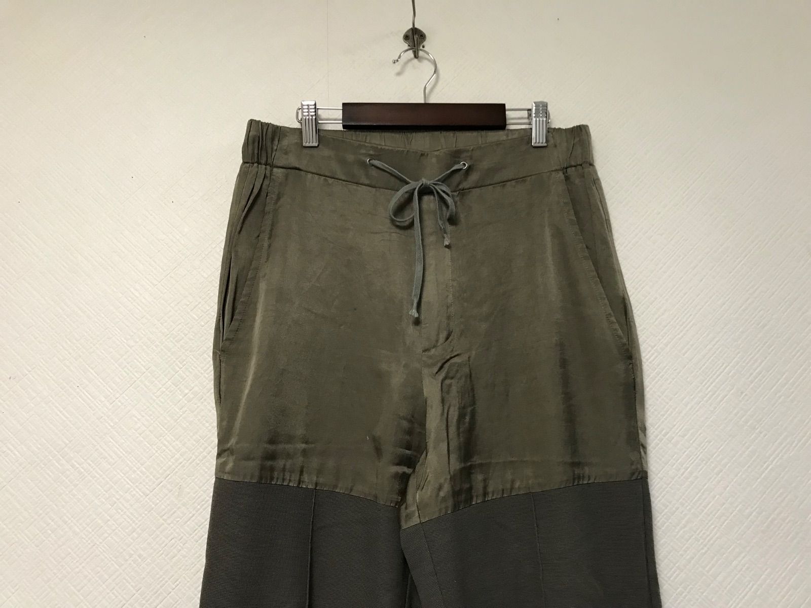 本物アトウatoサテン切り替えデザインドレスイージーパンツメンズサーフアメカジミリタリーストリートスケータービジネススーツモードドレスゴルフバイカーロック48日本製カーキL