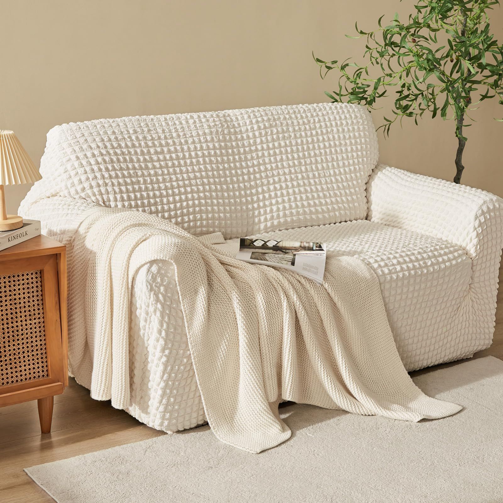 3人掛け_クレーム Topfinel ソファーカバー 3人掛け 肘付き クレーム 無地 北欧 滑り止め ストレッチ フィットタイプ 防塵 伸縮素材伸び良く 汚れ 洗える 柔らかい 四季適用
