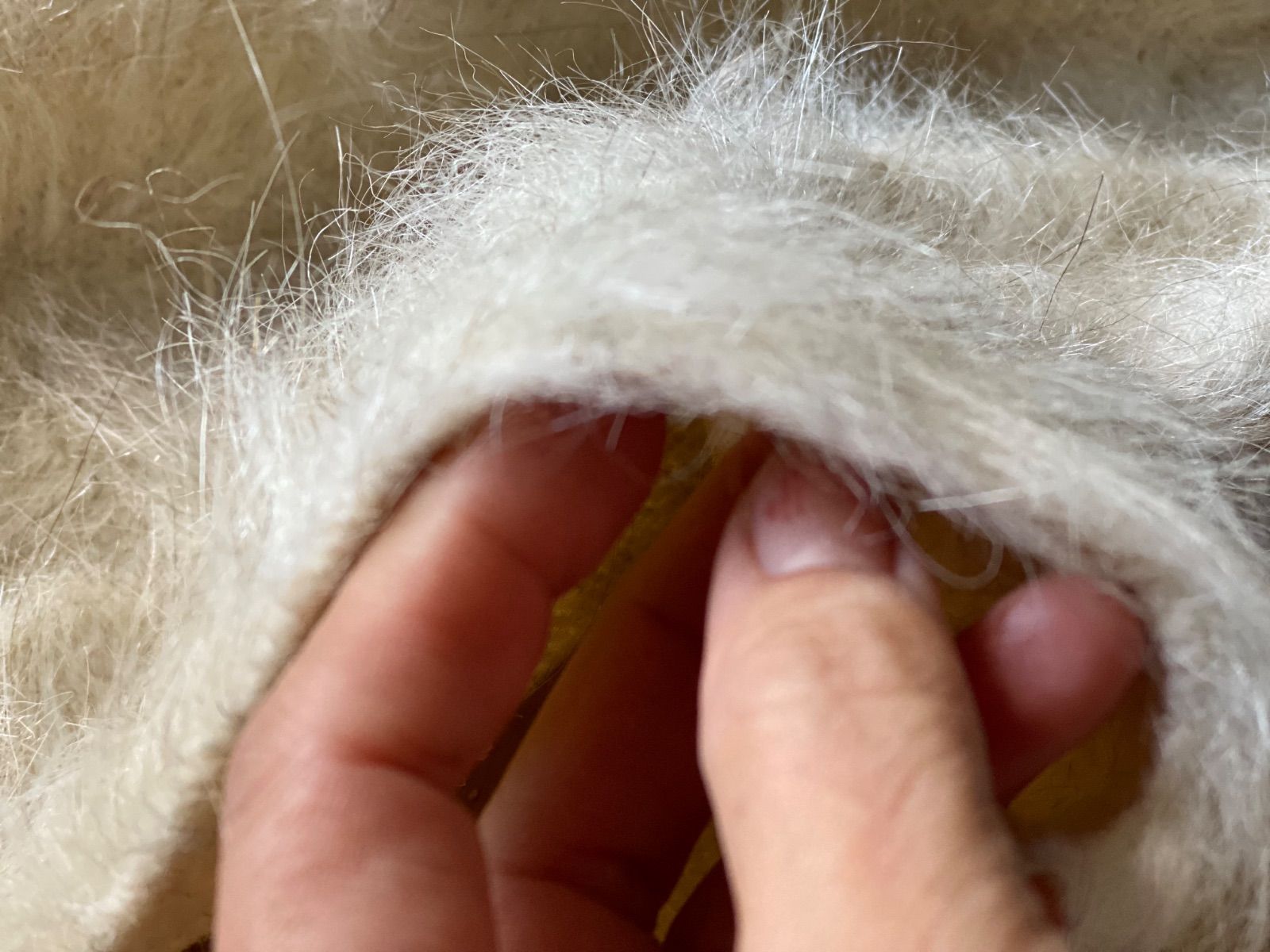モヘアの毛糸はアクリル混のものでも、100グラムのものでも2500円~3000円ほどしますので こちらほど沢山のモヘアが使われおりますと、とてもお高いものになります。