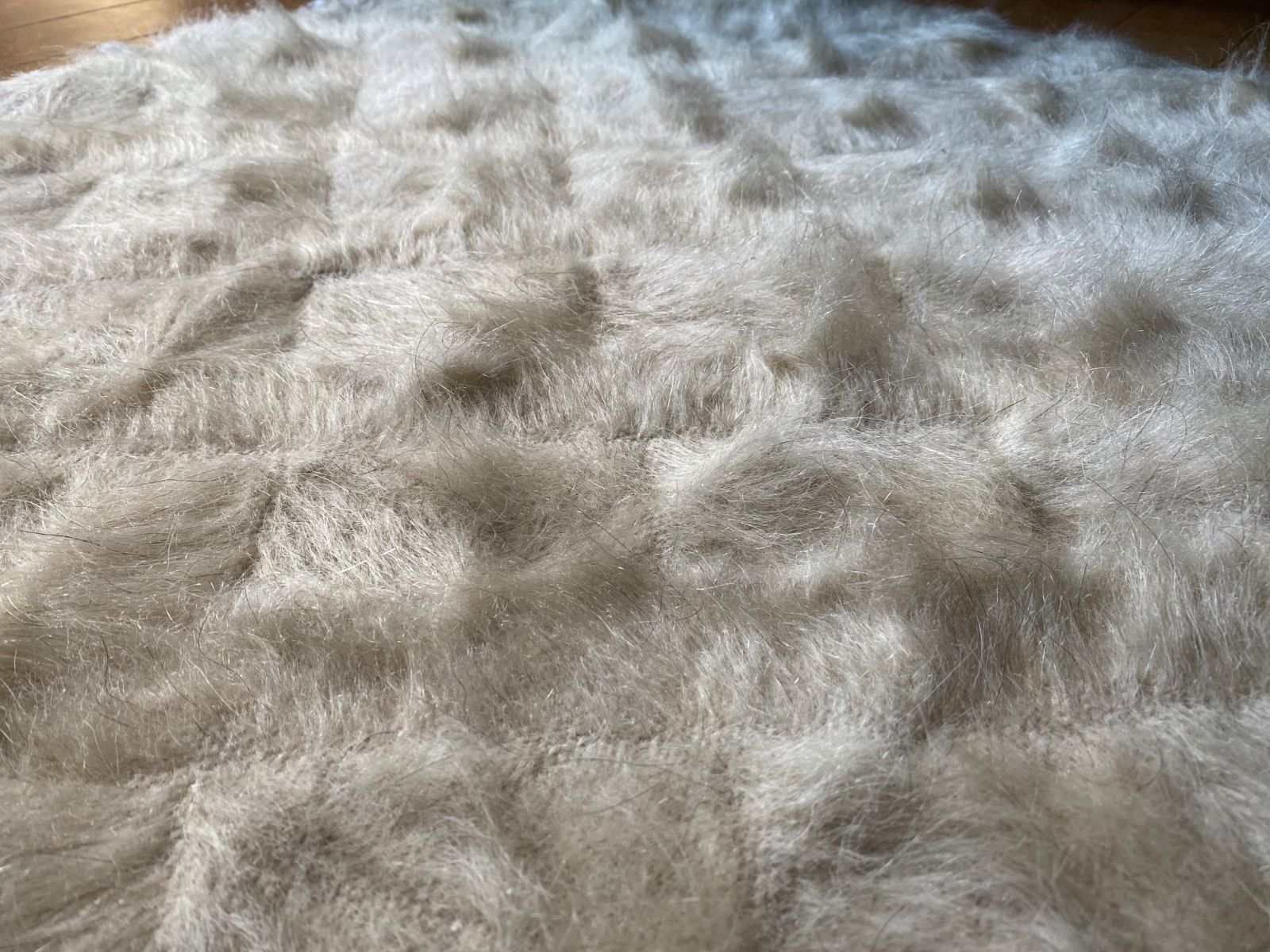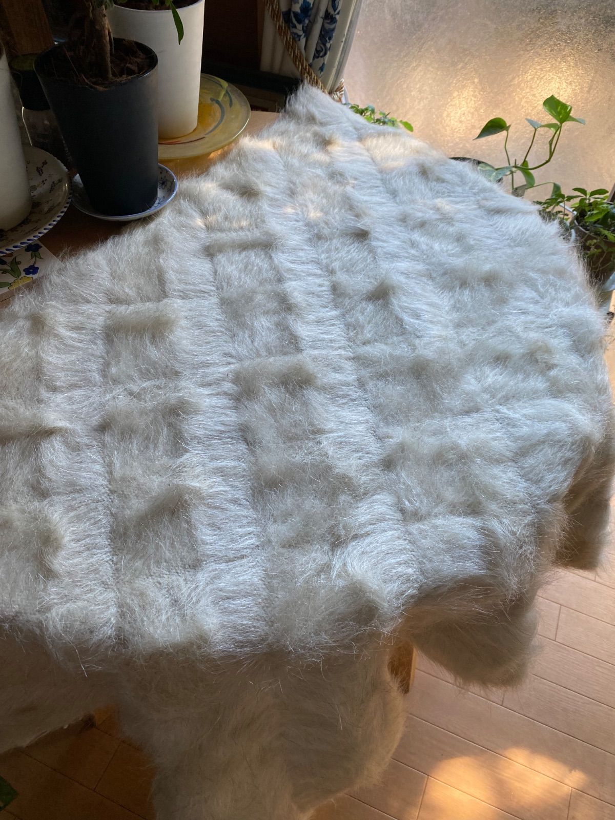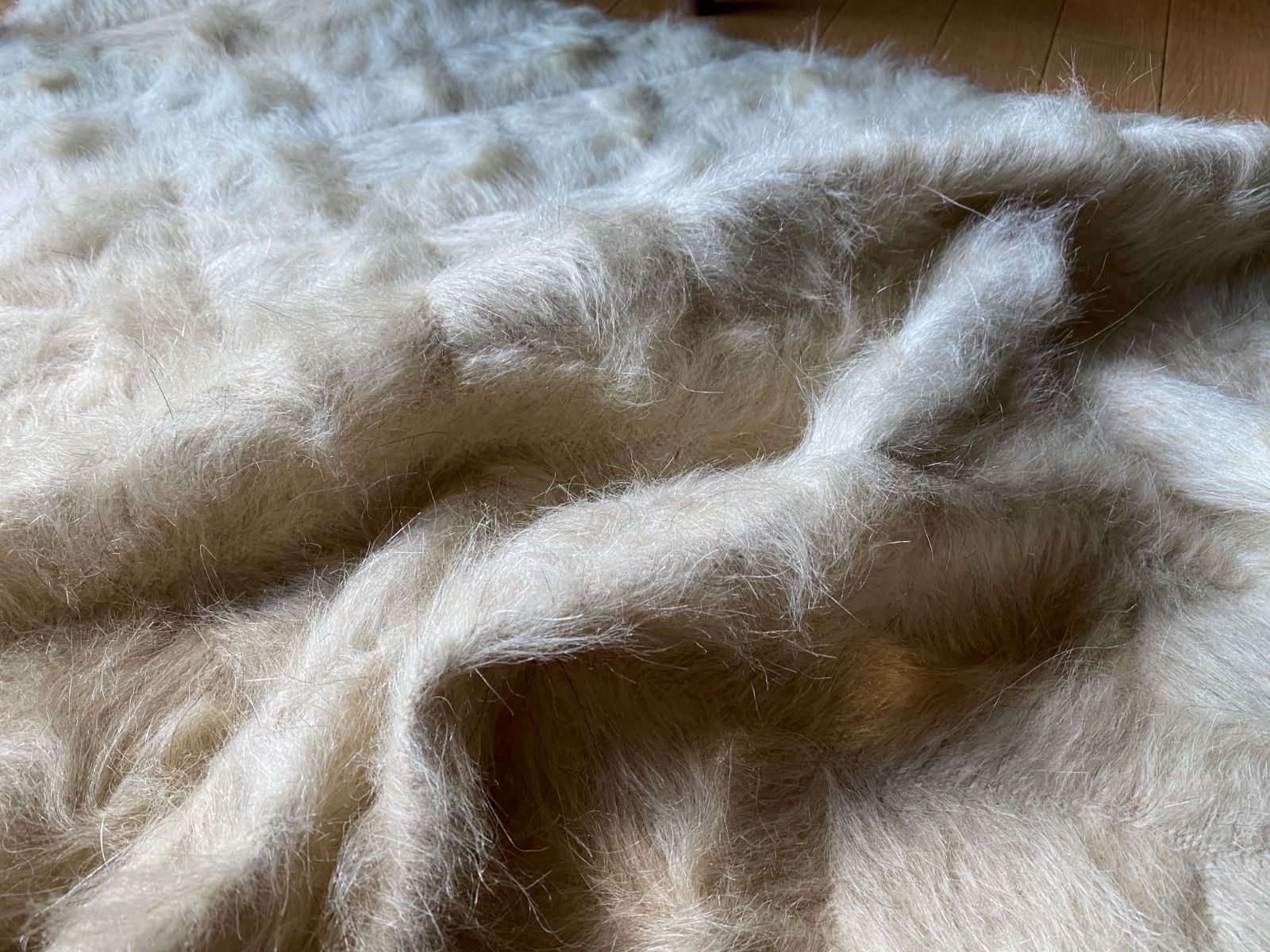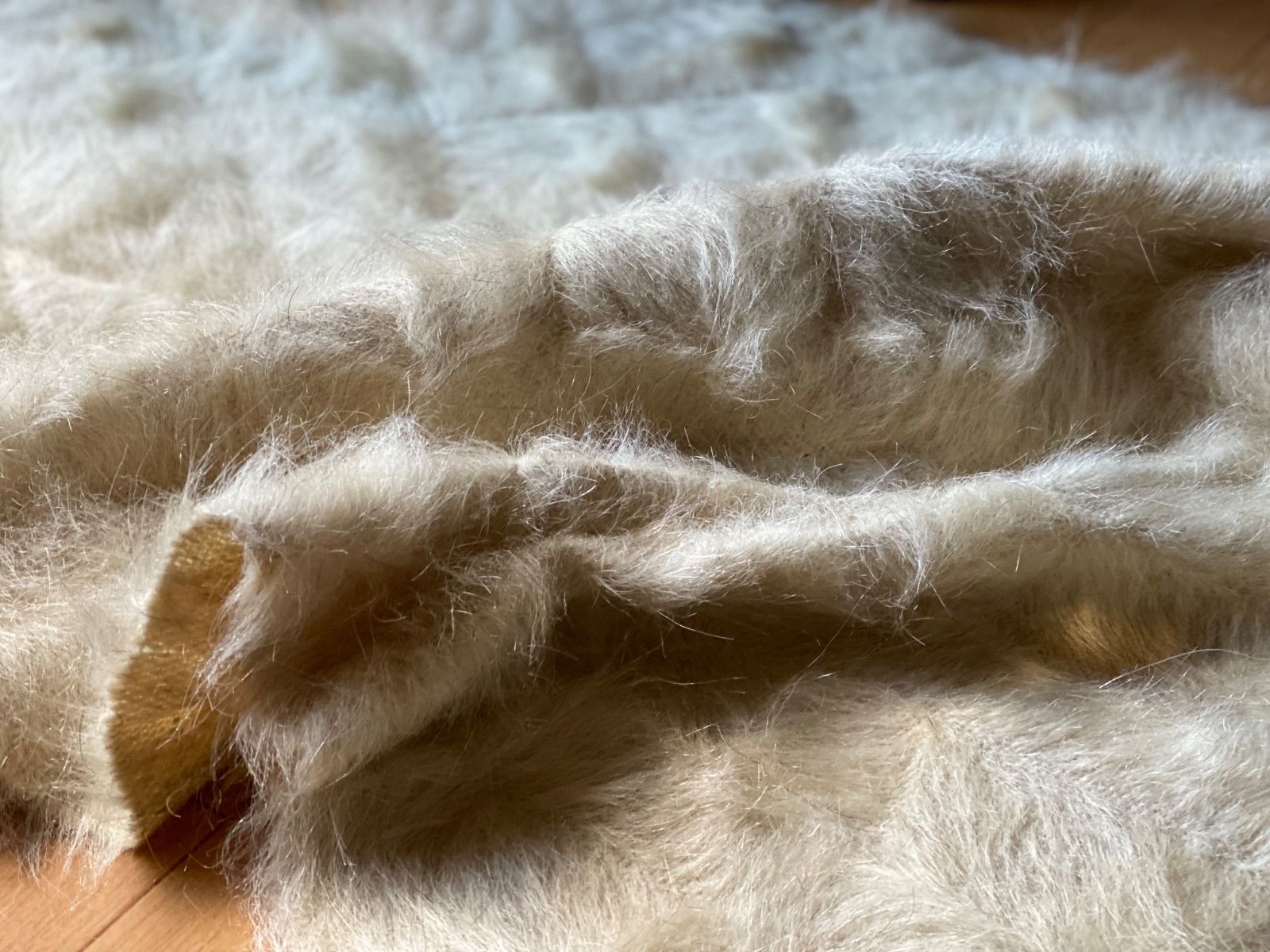 アンゴラヤギのモヘアで織られたほぼ新品未使用ですが、40年ほど織られたもので今織られたものよりさらに密でモヘアの質が大変良いです。新古品になります。