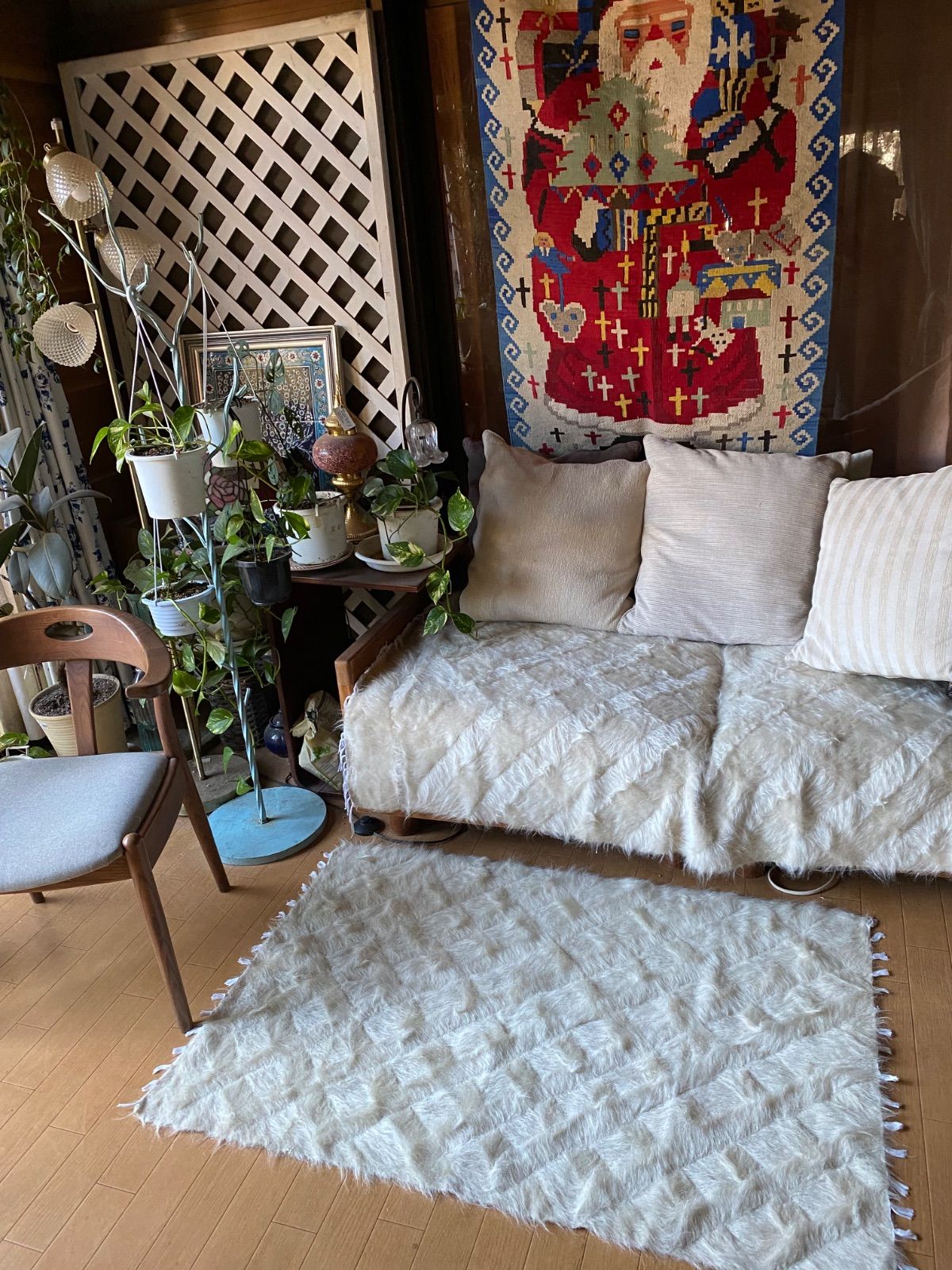 冬は毛がある面で、夏は裏面でキリムとしてお使いいただける優れものです。