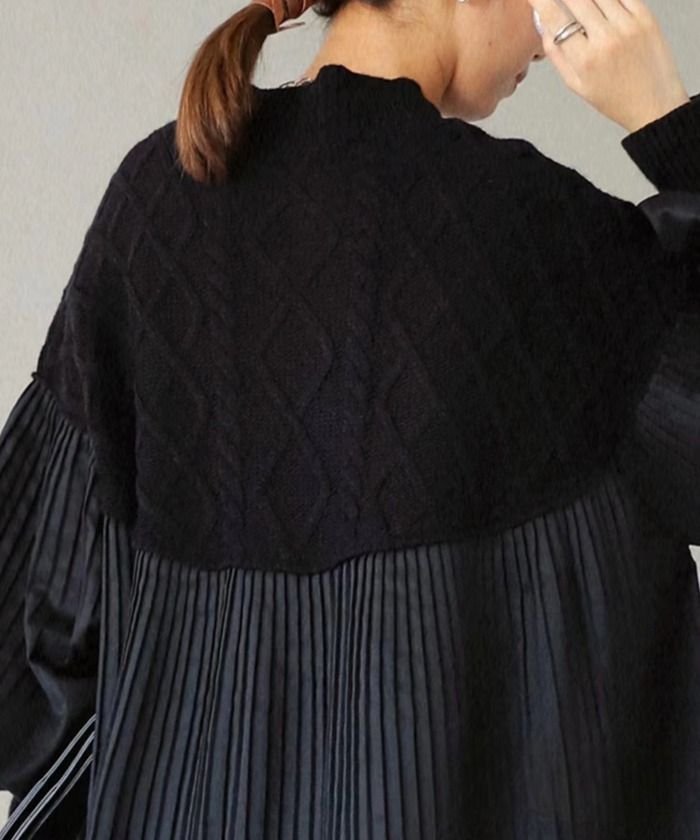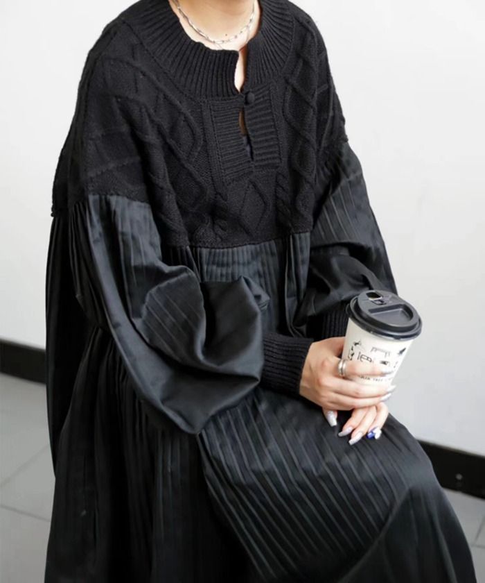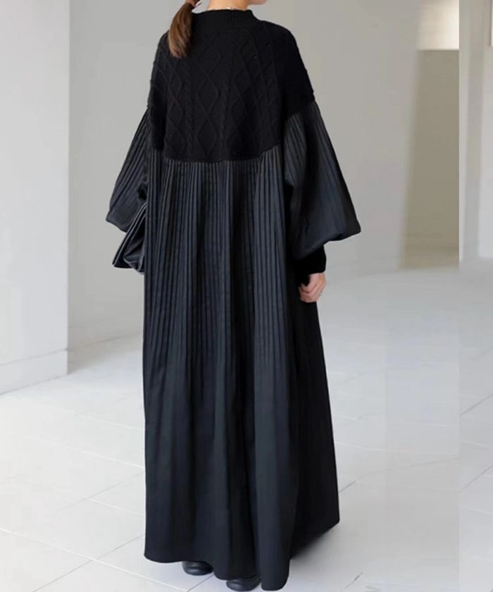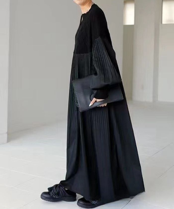 ワンピース レディース 春 秋 冬 ワンピース ロング丈 ニット 異素材 切り替え 長袖 プリーツ ワンピース 体型カバー おしゃれ ニット ワンピース ロング丈 ニット 切り替え カジュアル レイヤード風 xzzhang30