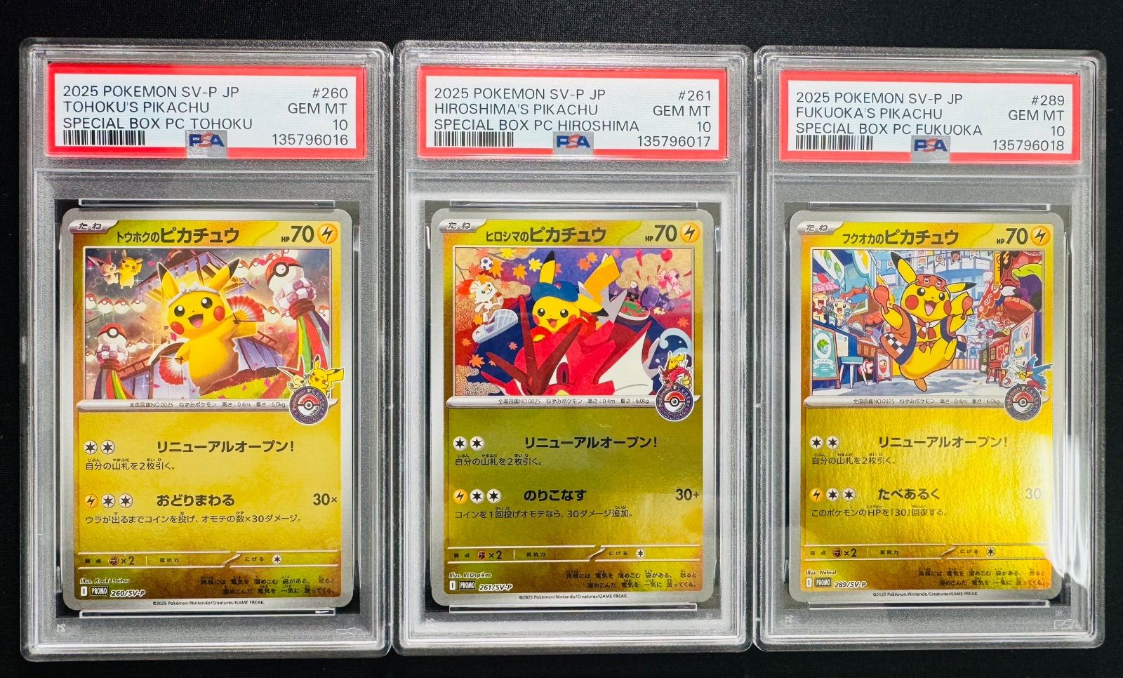 【 PSA10・3連番】トウホク ヒロシマ フクオカ のピカチュウ 3枚セット