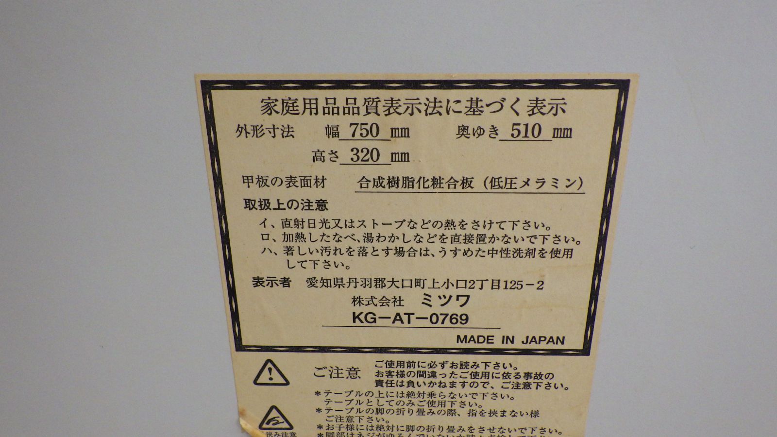 【現地引き取りのみ リユース品】折りたたみローテーブル(R7-700) 汚れ、一部剥がれあり