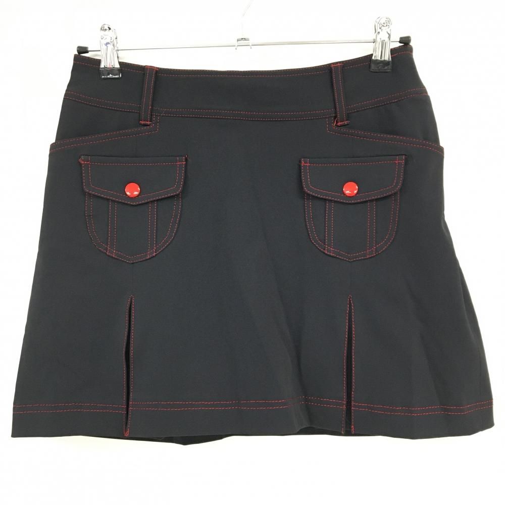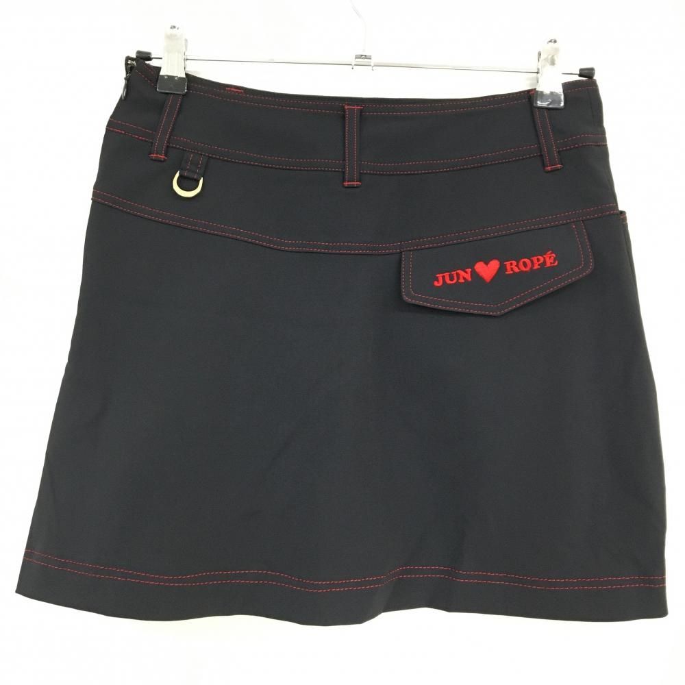 【超美品】ジュンアンドロペ スカート 黒×レッド 複数ポケット ロゴ刺しゅう 内側インナーパンツ レディース M ゴルフウェア JUN&ROPE
