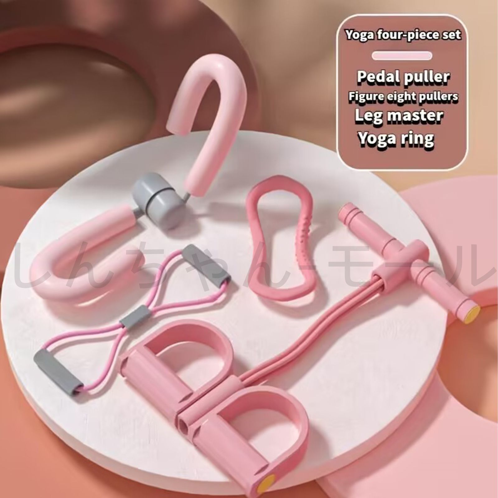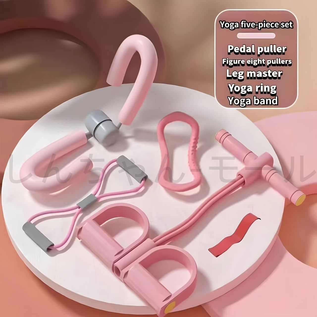 4/5ピース 全身変身ヨガセット - フットペダルトレーナー、レッグシェイパー、太ももスリマー、多機能レジスタンスバンド、ヨガリングで彫