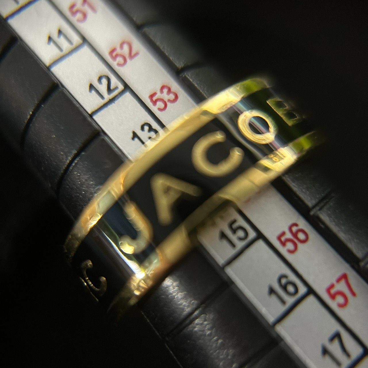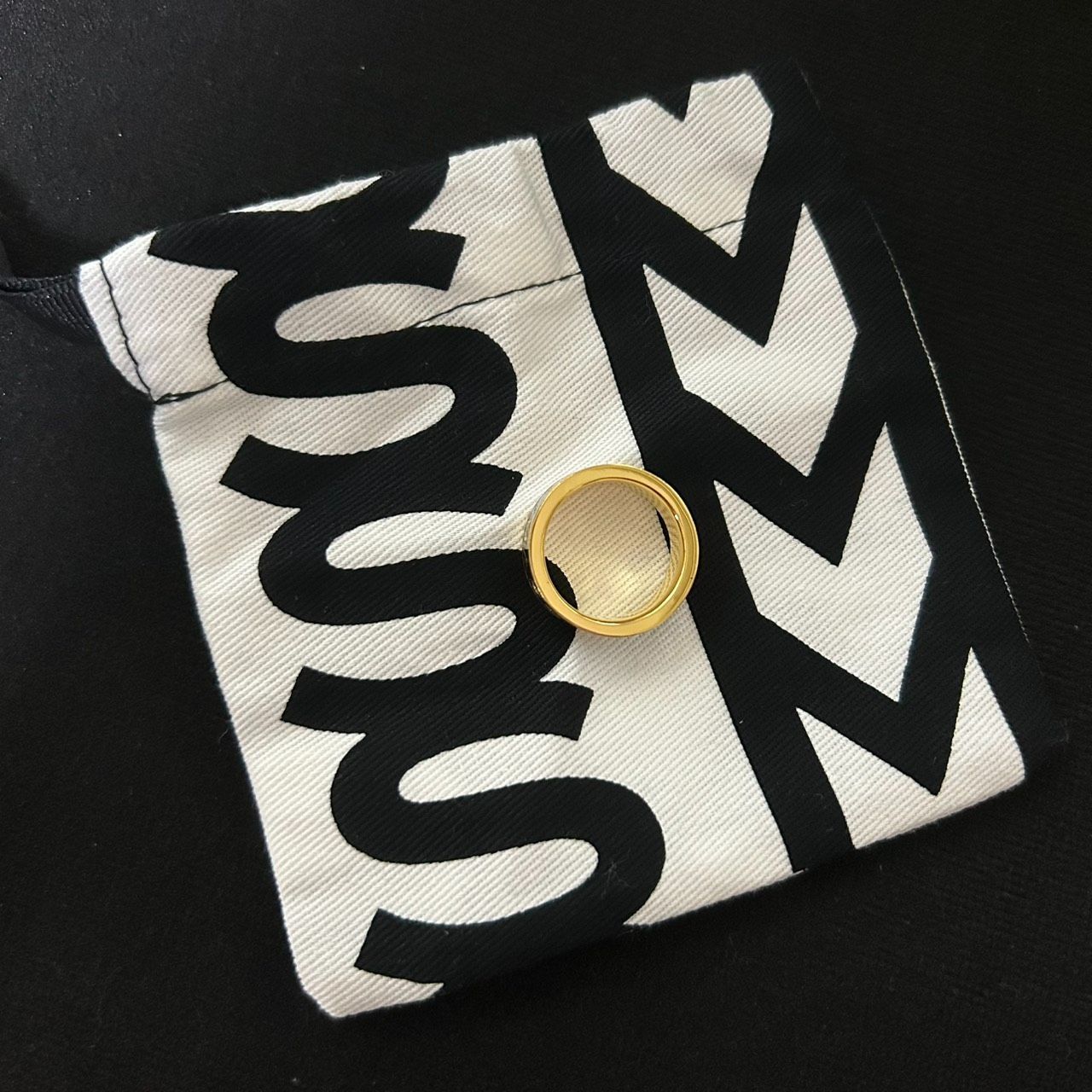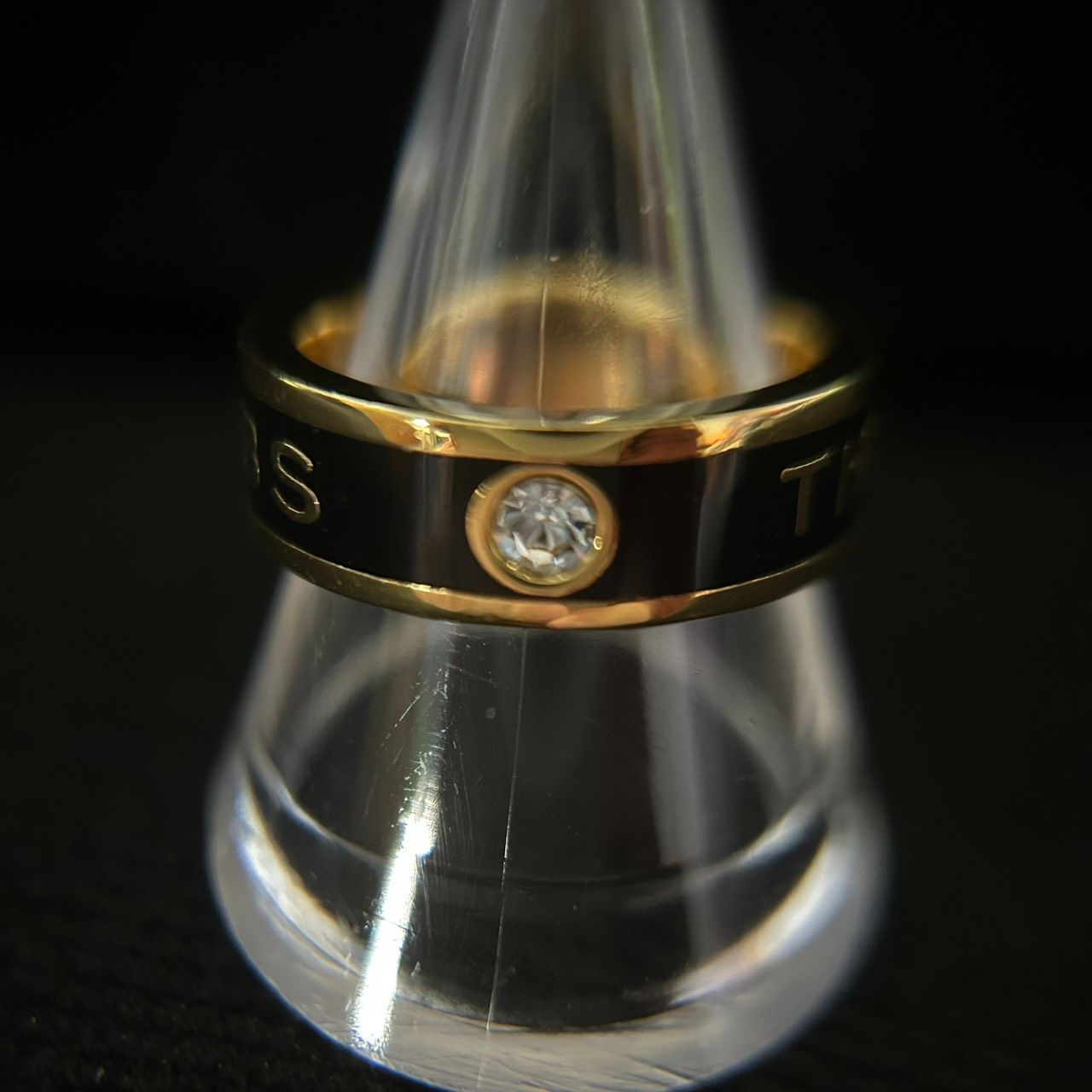 【良品】MARC JACOBS マークジェイコブス ロゴリング 指輪 ゴールド×ブラック ラインストーン 14号相当 アクセサリー レディース 袋つき 1205002