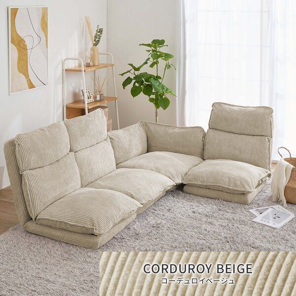 【ポイント14倍!12/5限定】 リクライニングフロアコーナーソファ コーデュロイベージュ CDBE