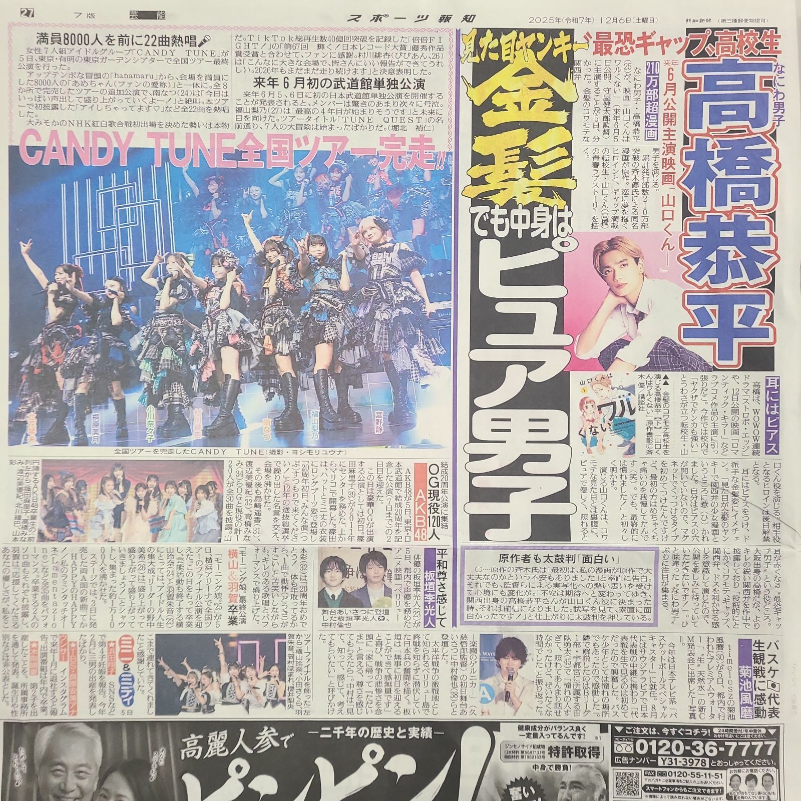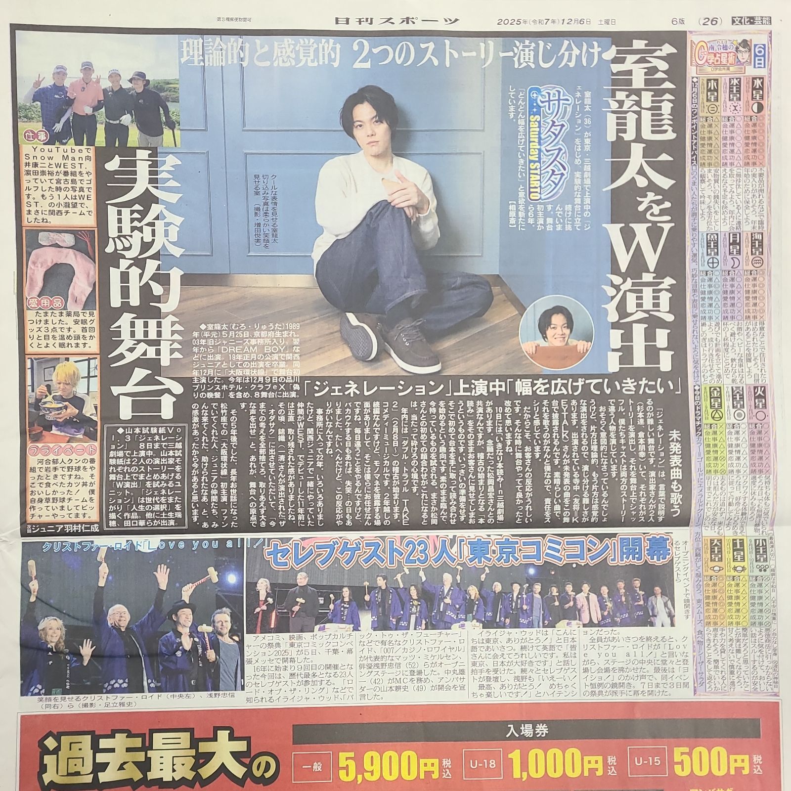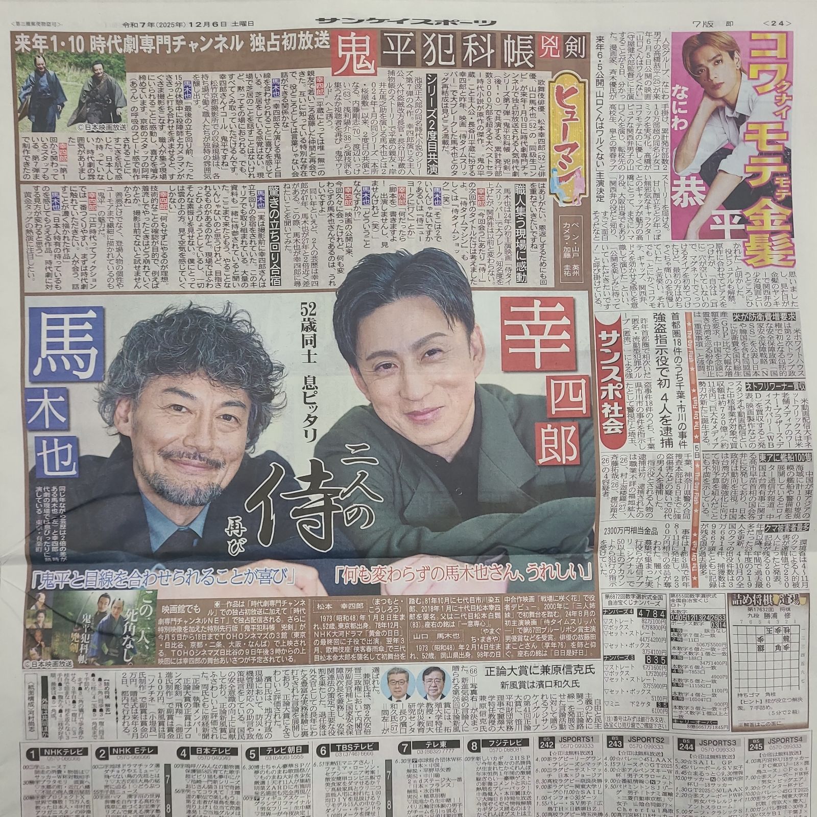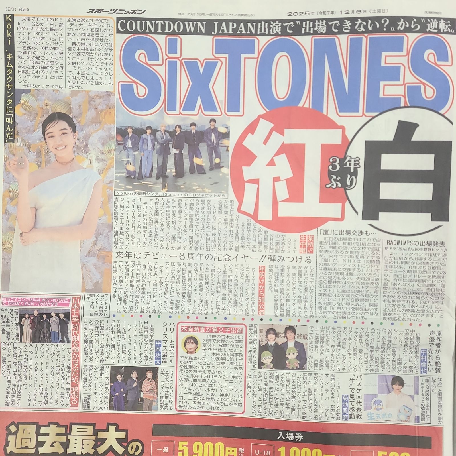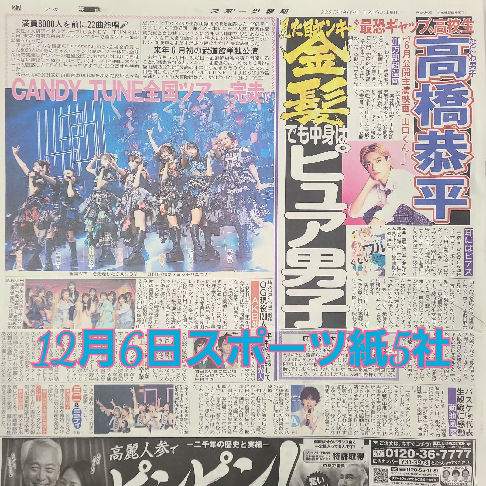 匿名配送!送料込み! 12月6日 朝刊 スポーツ紙全5社