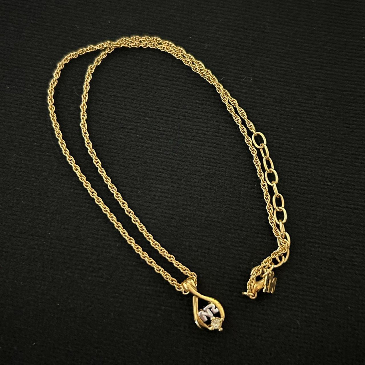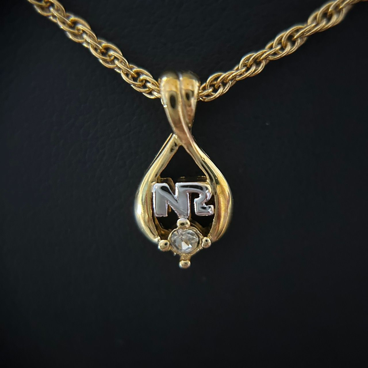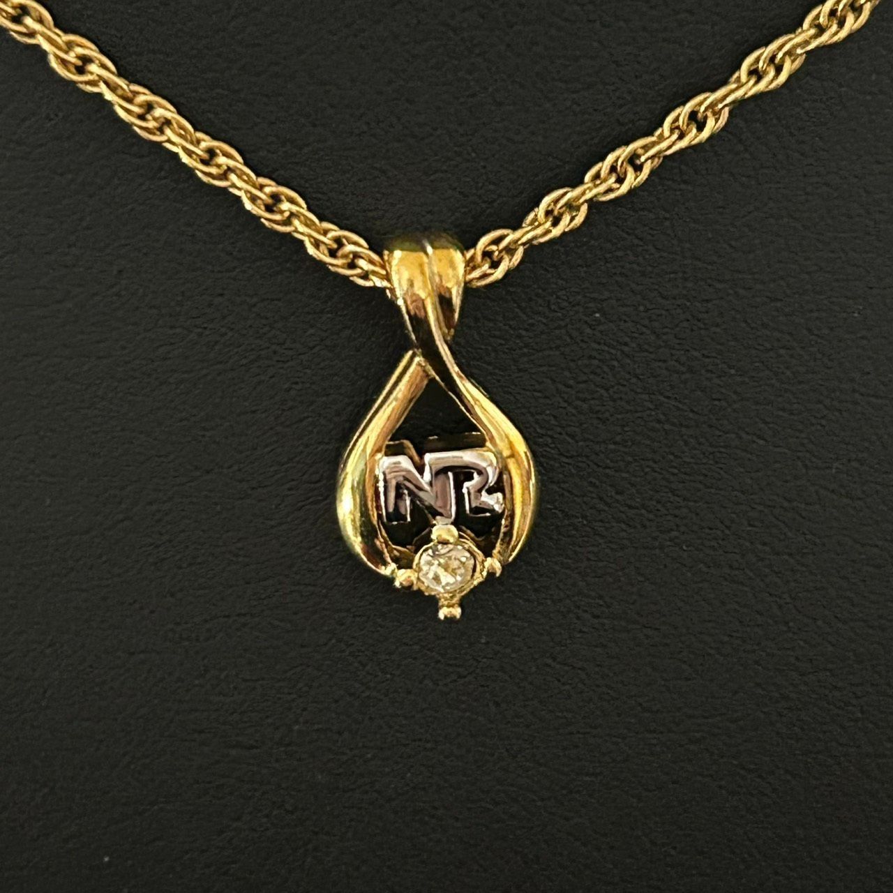 【良品】ニナリッチ NR ロゴ ネックレス ゴールド ペンダント しずく型 ラインストーン付 / Nina Ricci NR Logo Gold Drop Pendant Necklace 1206005