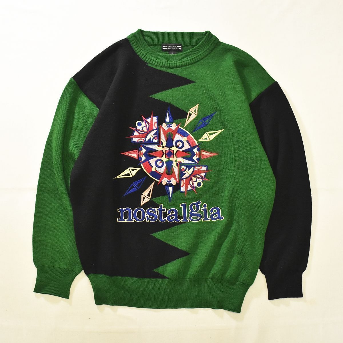 90s YES PLEASE PRODUCTS 刺繍デザイン ニット セーター M 古着