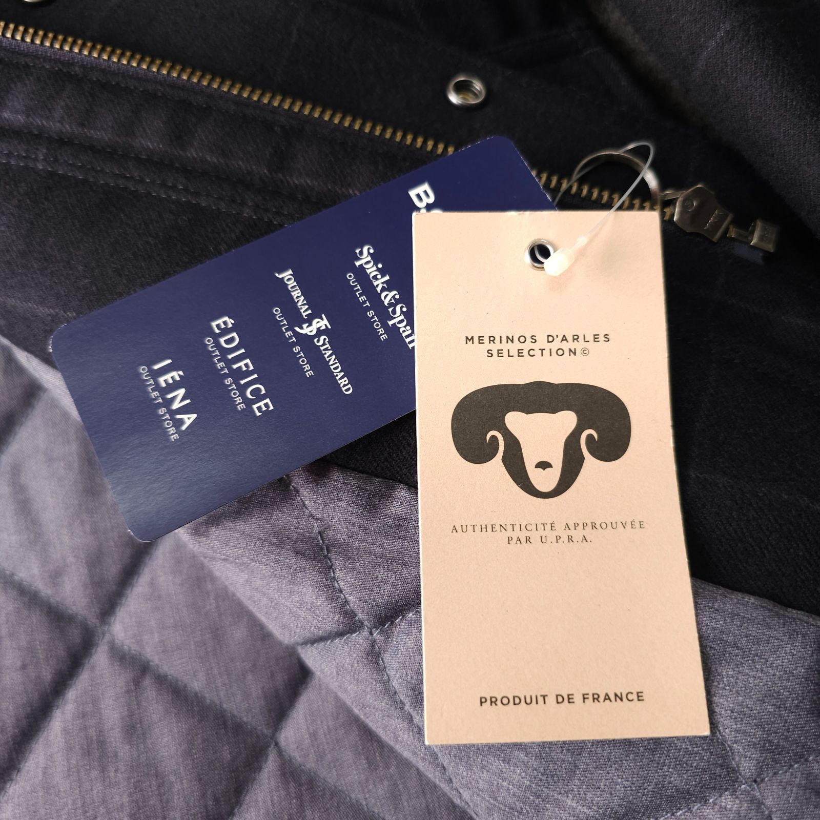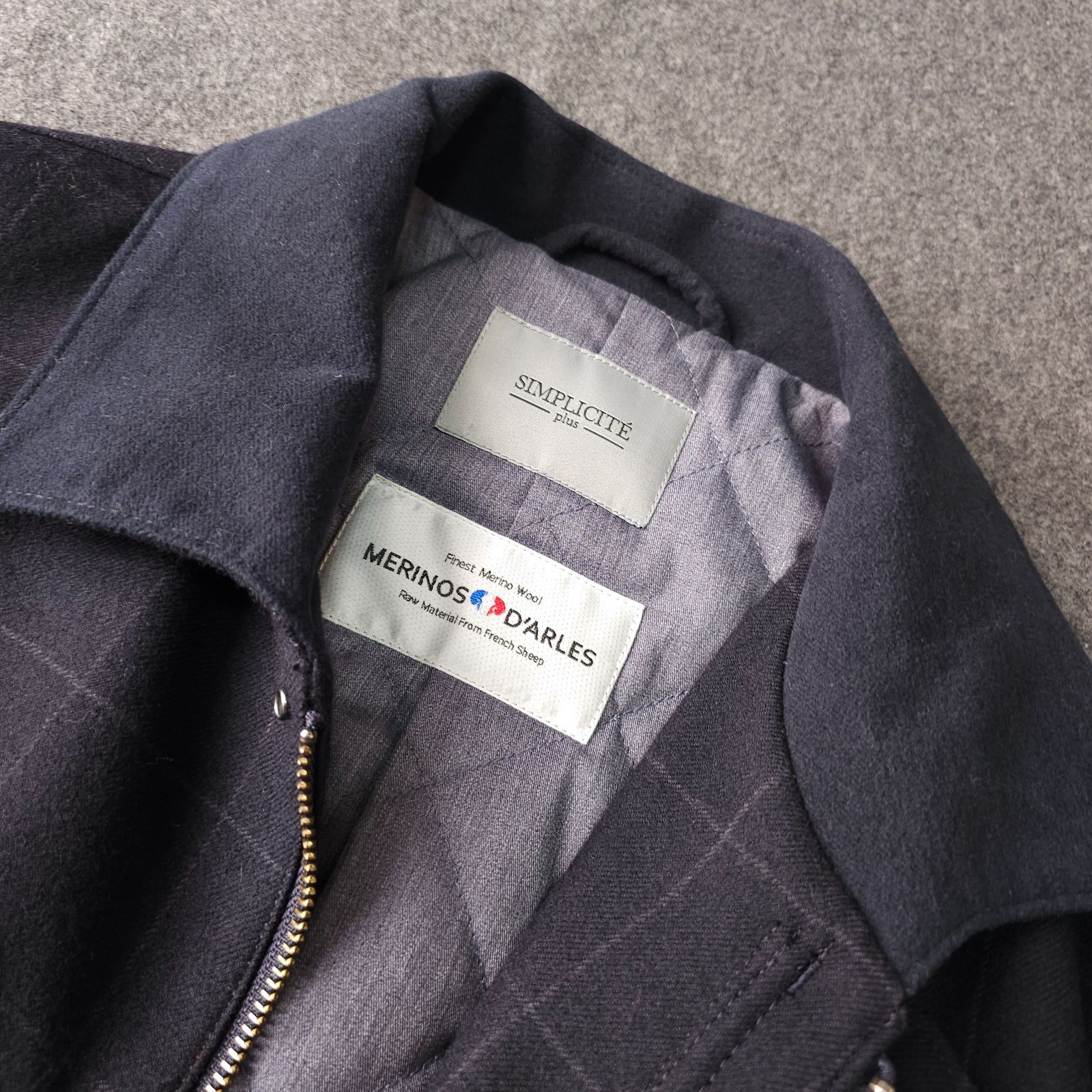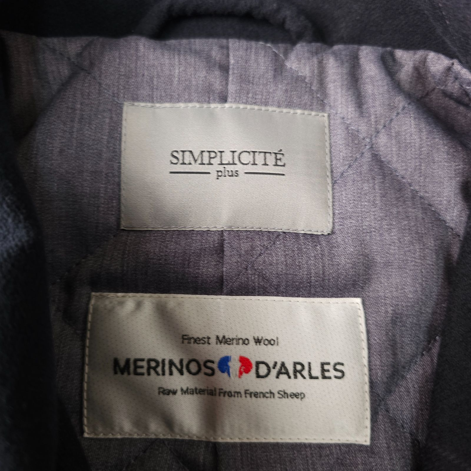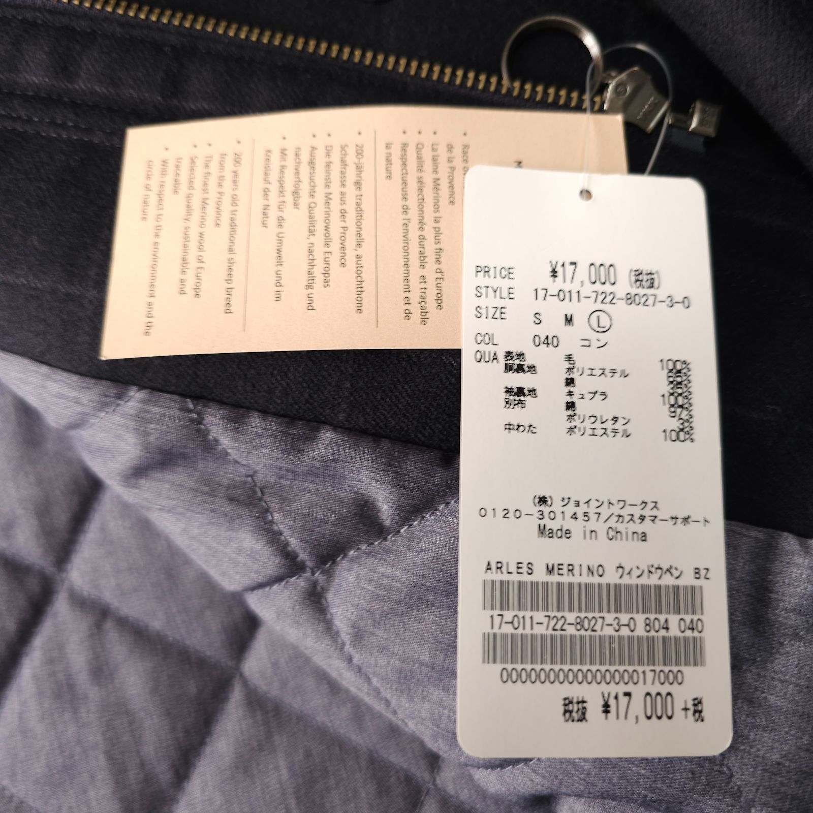 新品未使用【SIMPLICITE-plus-】シンプリシテプリュス 秋冬 ウィンドペンチェック柄 中綿 キルティング ブルゾンジャケット L MERINOS D'ARLES メリノウール生地 アルルスメリノ メンズ ネイビー
