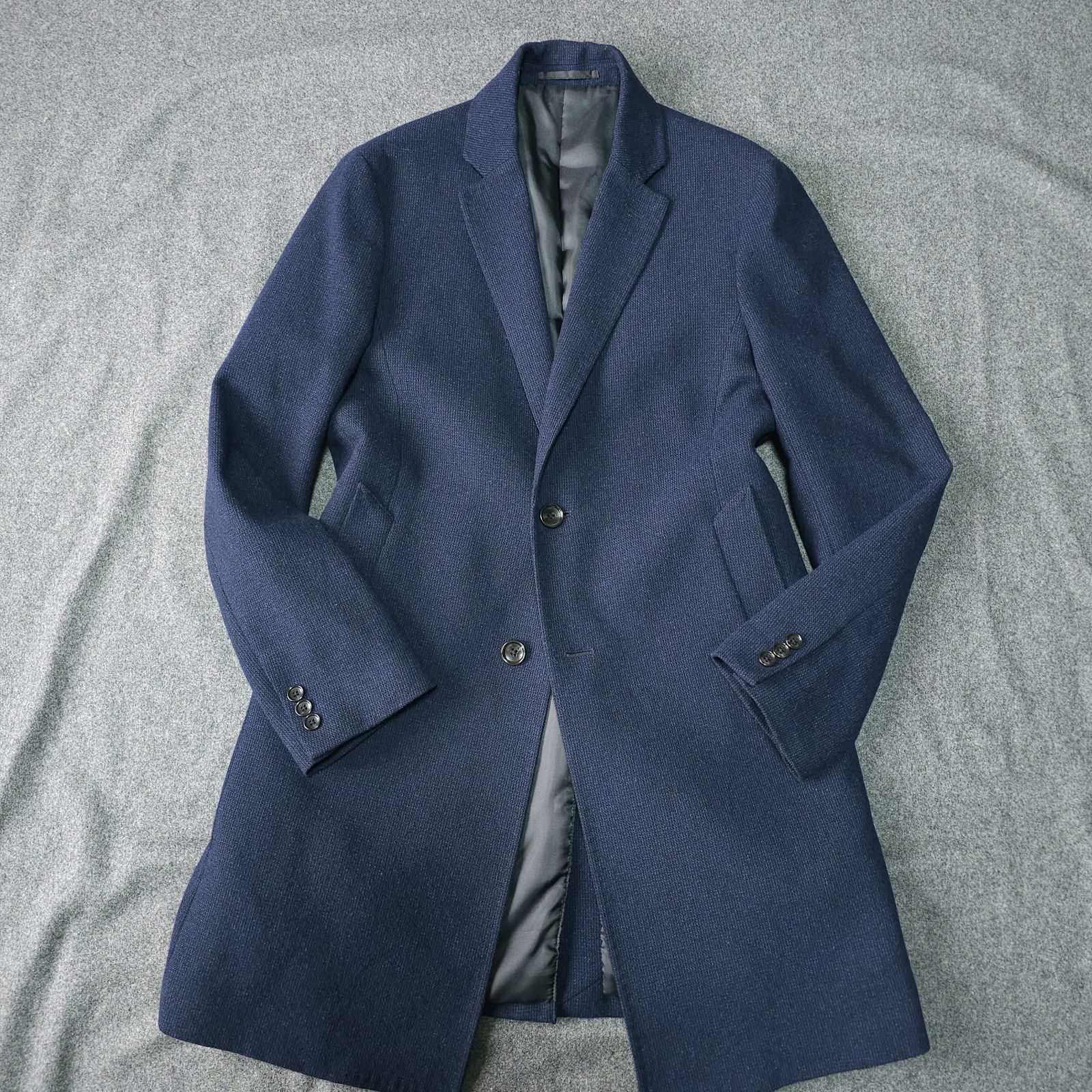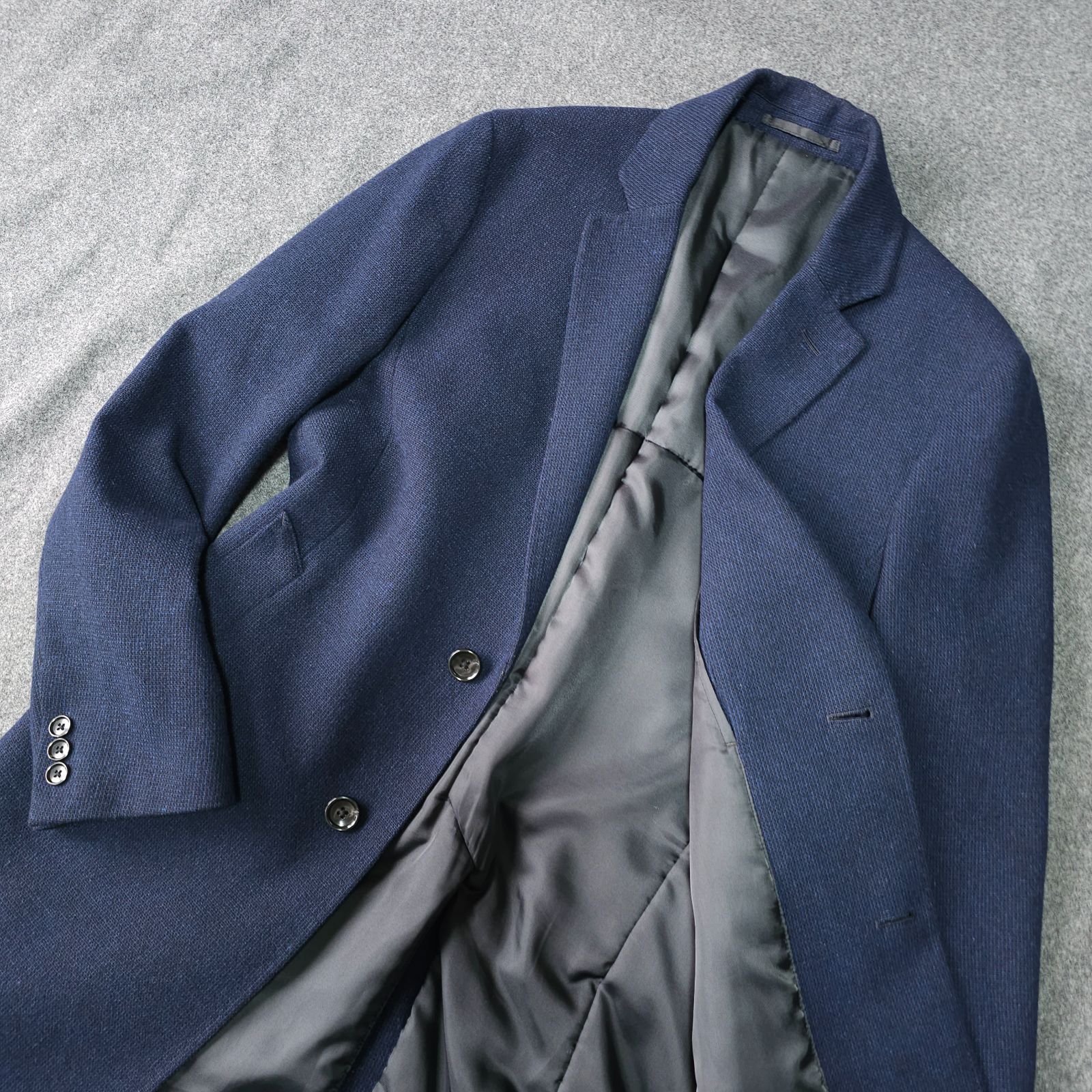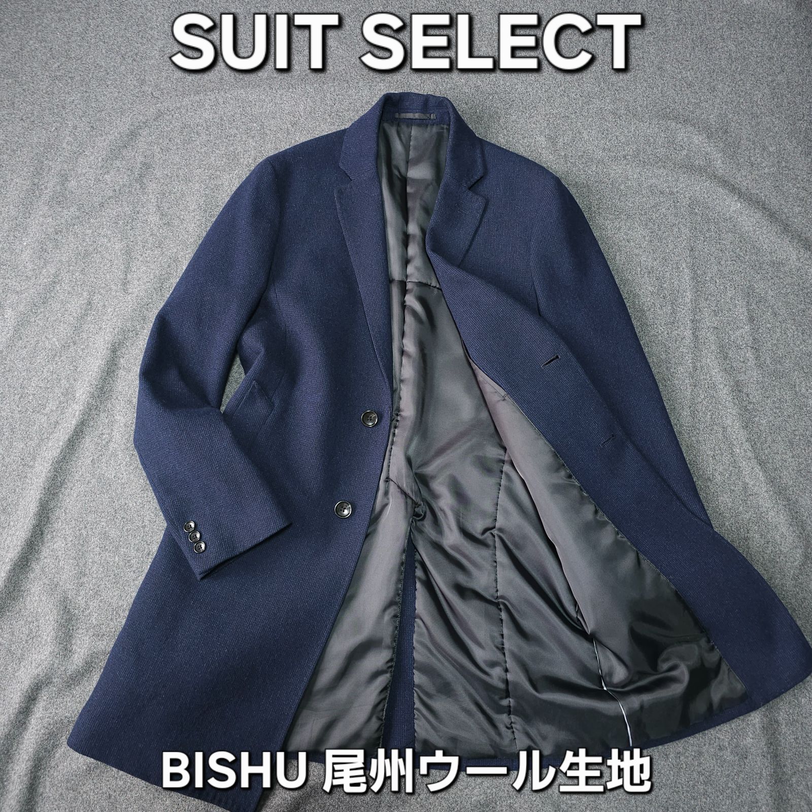 SUIT SELECT スーツセレクト 秋冬BISHU 尾州 ウール 生地 中綿 チェスターコート 紺色 メンズ ビジネス M ネイビー