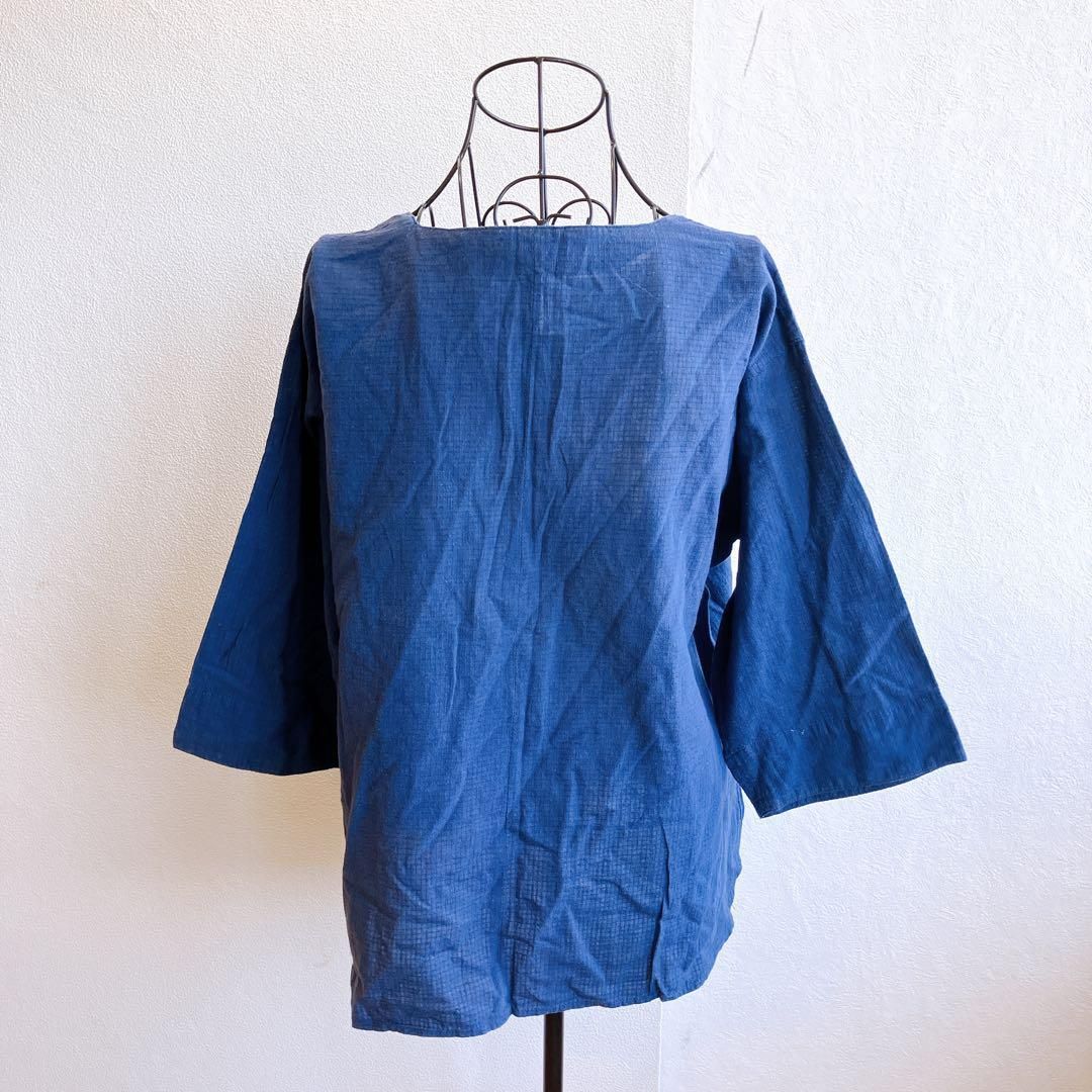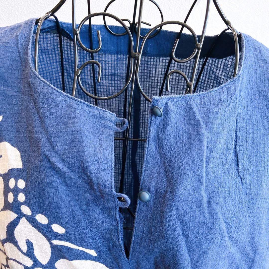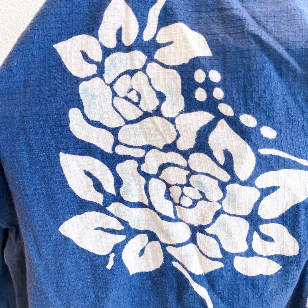 良品✨ トップス チュニック サイドスリット ラウンドネック フロントプリント 和柄 花柄 コットン 綿 7分袖 チュニック丈 ゆったり 大きめ オーバーサイズ 体型カバー 大人カジュアル 日本製 Made in Japan 昭和 レトロ 90s