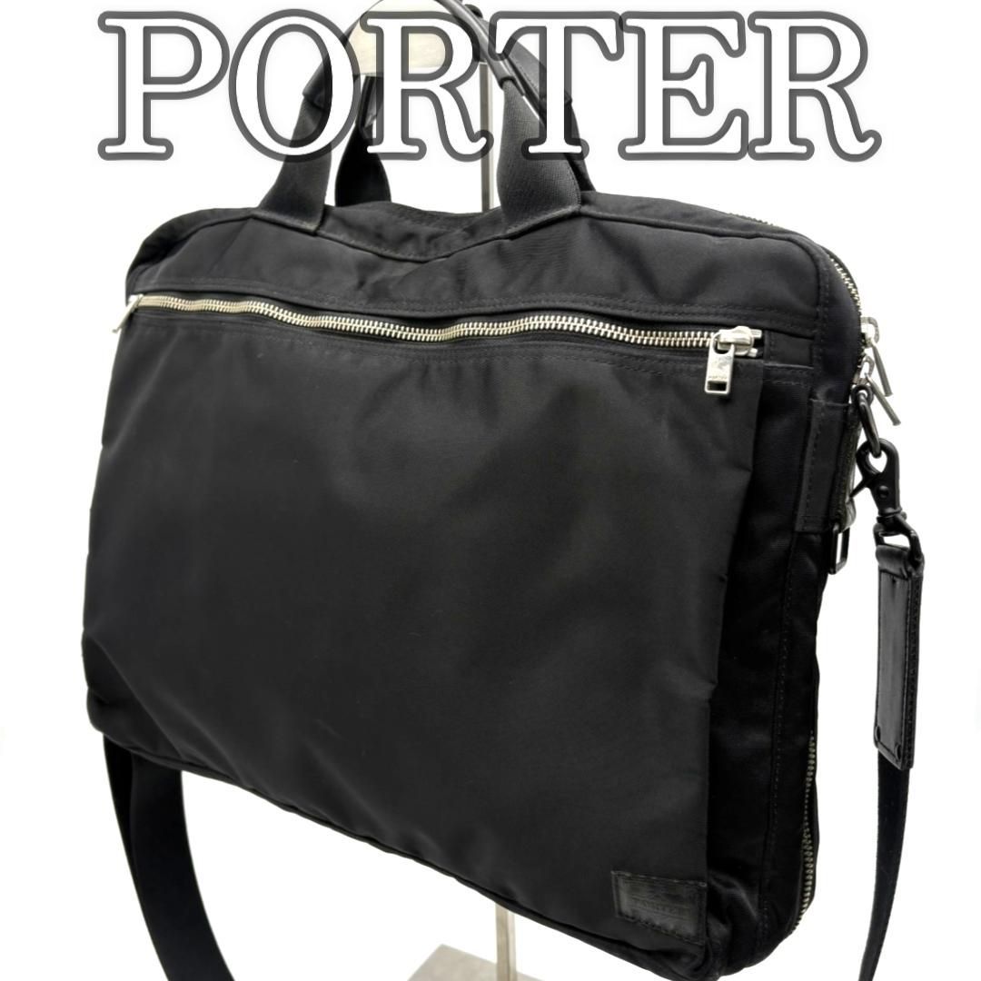 ポーター PORTER ビジネスバッグ 2way ブリーフケース ナイロン 黒 ブラック A4対応 大容量 軽量 薄型 通勤 仕事 メンズ ショルダー 吉田カバン ビジネス 通学 斜め掛け 手持ち 多機能 出張 書類収納 PC収納 シンプル デザイン 鞄