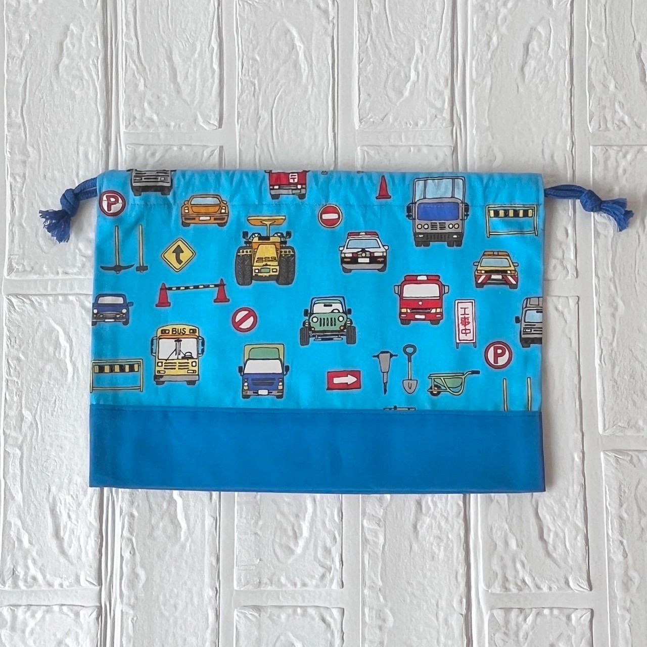 ハンドメイド C186 はたらく車 乗り物 20×29マチあり お弁当袋 給食袋 巾着袋 入学 入園