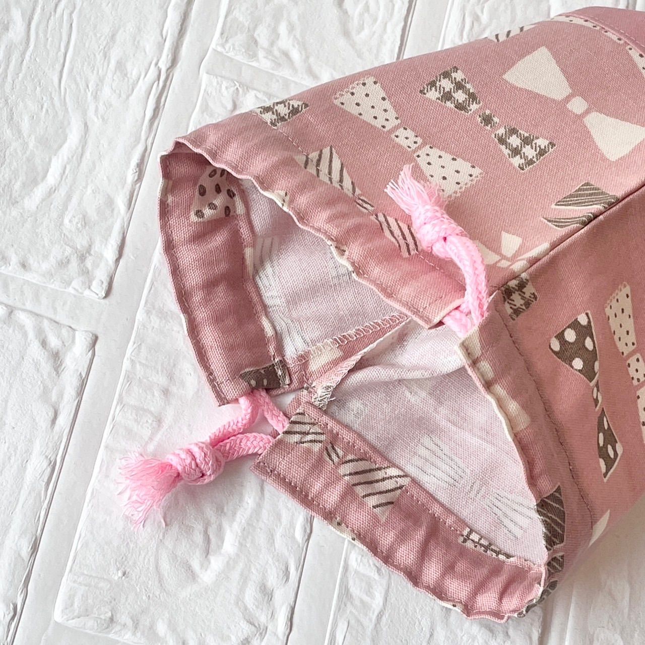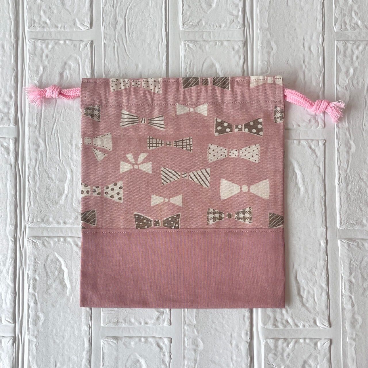 ハンドメイド C179 リボン くすみ 23×20 給食袋 コップ袋 巾着袋 入学 入園