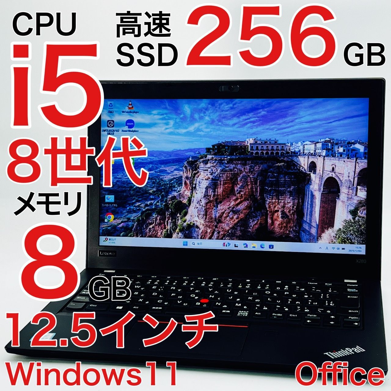 Core i5 8世代 8GB Windows11 ノートパソコン オフィス付き Lenovo ThinkPad X280 20KES0SP00 2018年式